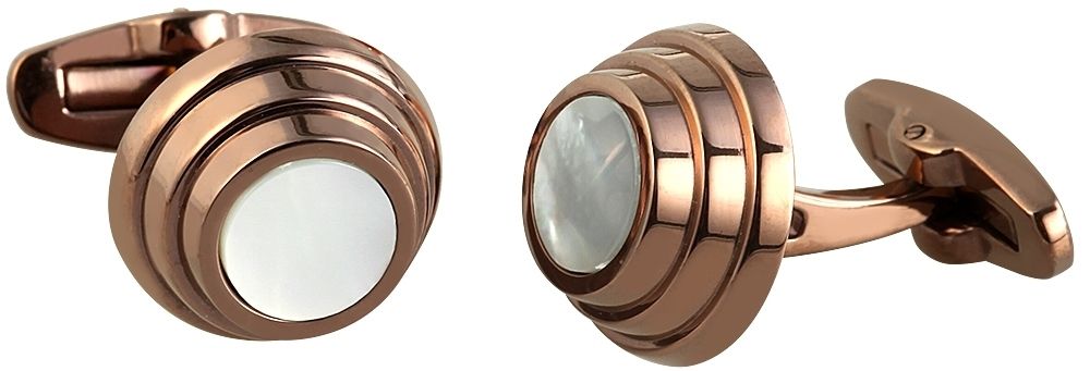 Produktinformationen "Engelhardt Edelstahl Manschettenknöpfe, IP Coffee beschichtet, mit Perlmutteinsatz, Ø 16 mm"