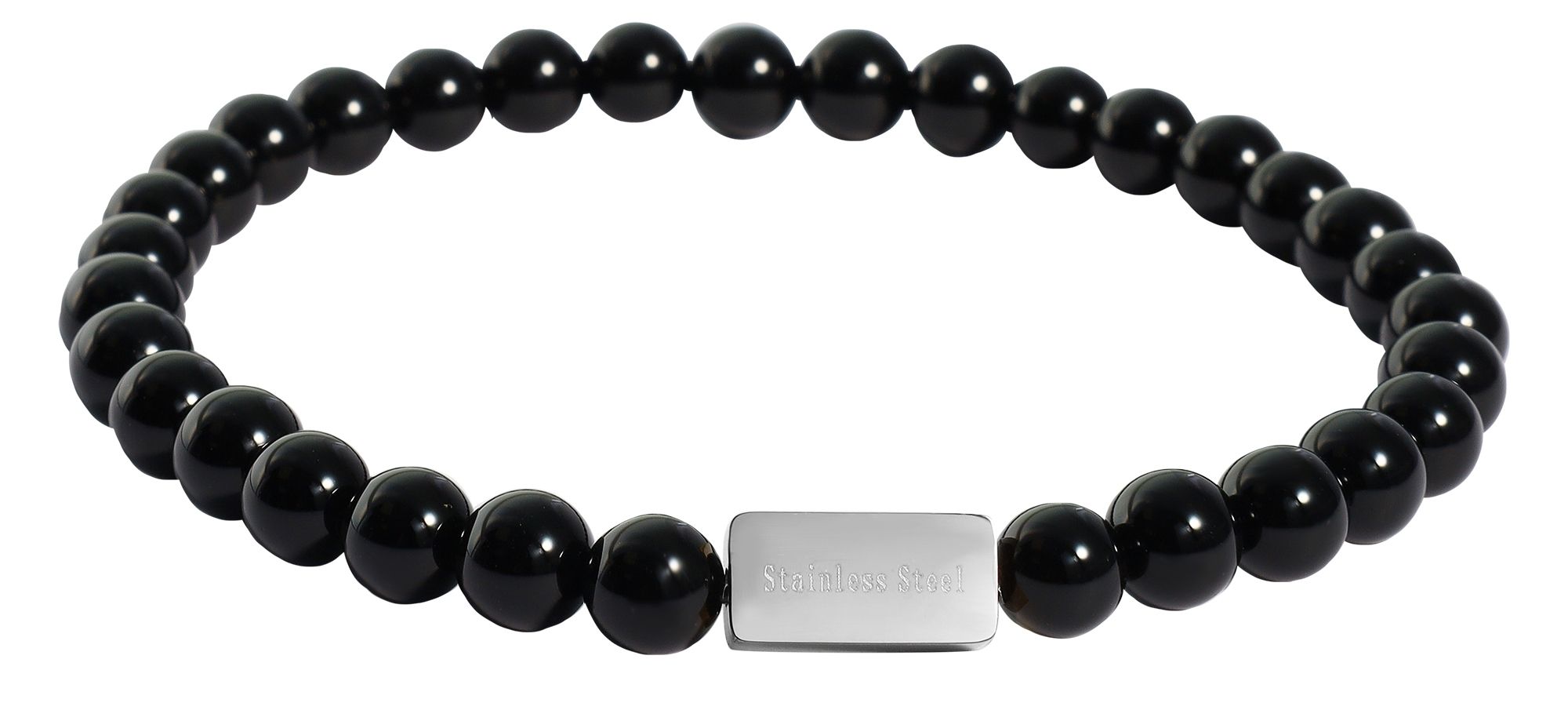 Das Armband "Evren" vereint stilvolles Design mit der kraftvollen Energie des Onyx. Die schwarzen Natursteinperlen (Ø 8 mm) ein Highlight und ein Symbol für Schutz, Stärke und Stabilität.