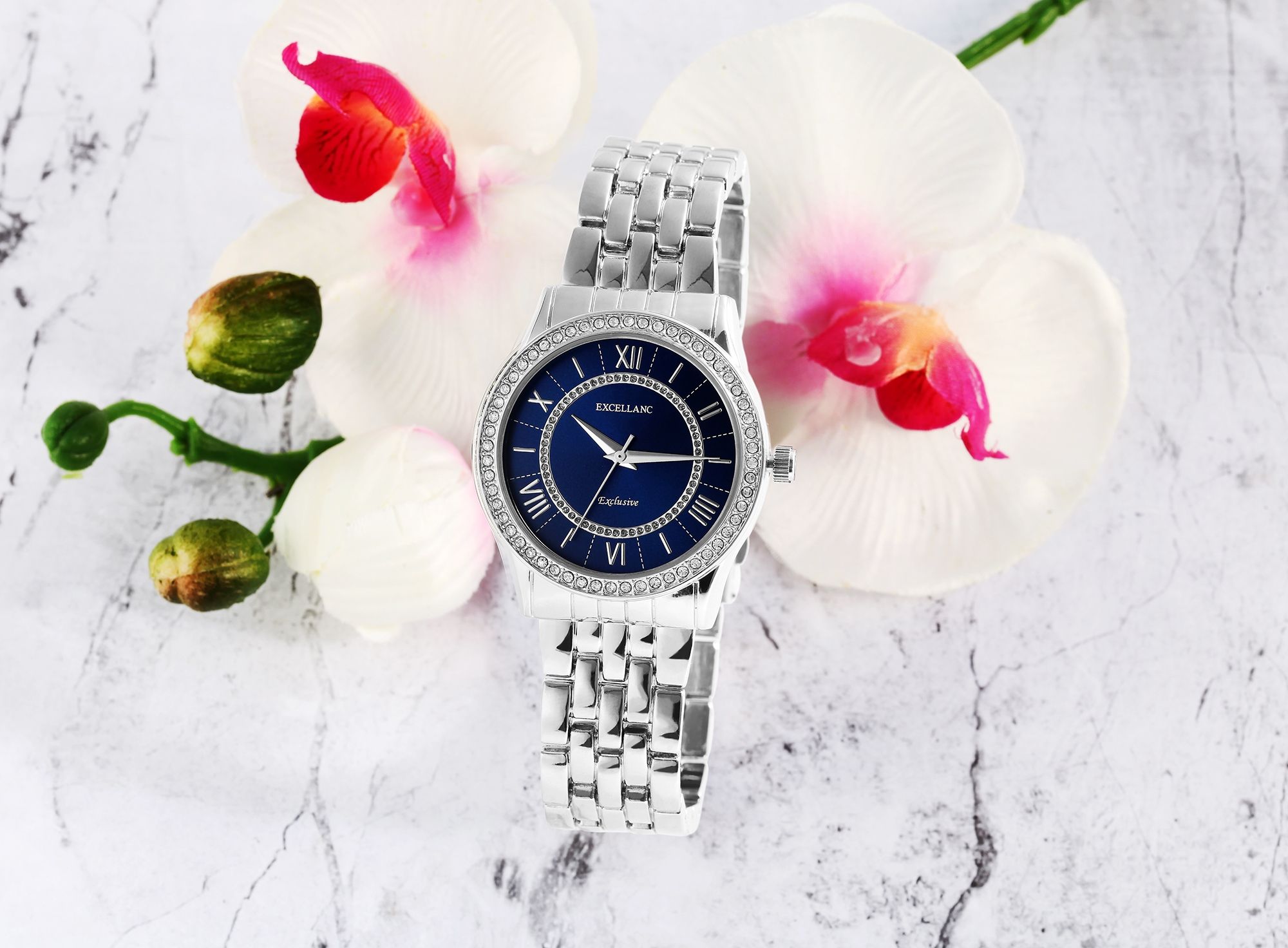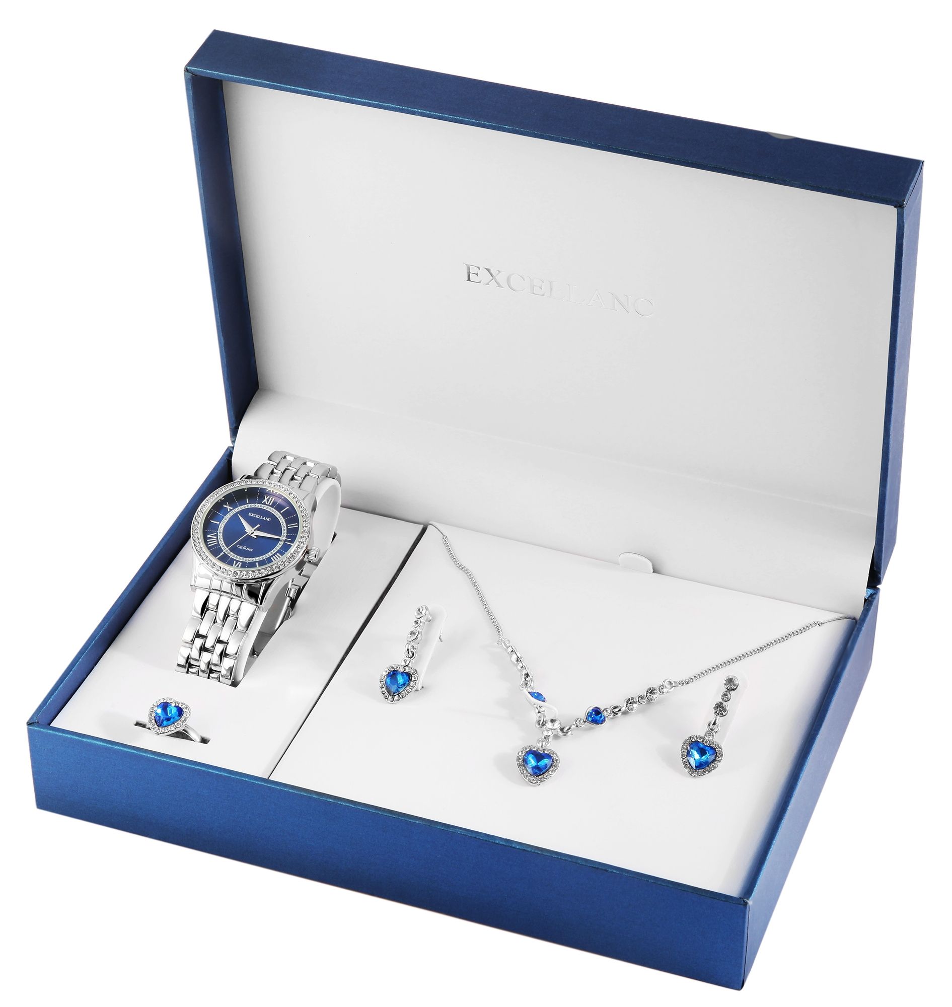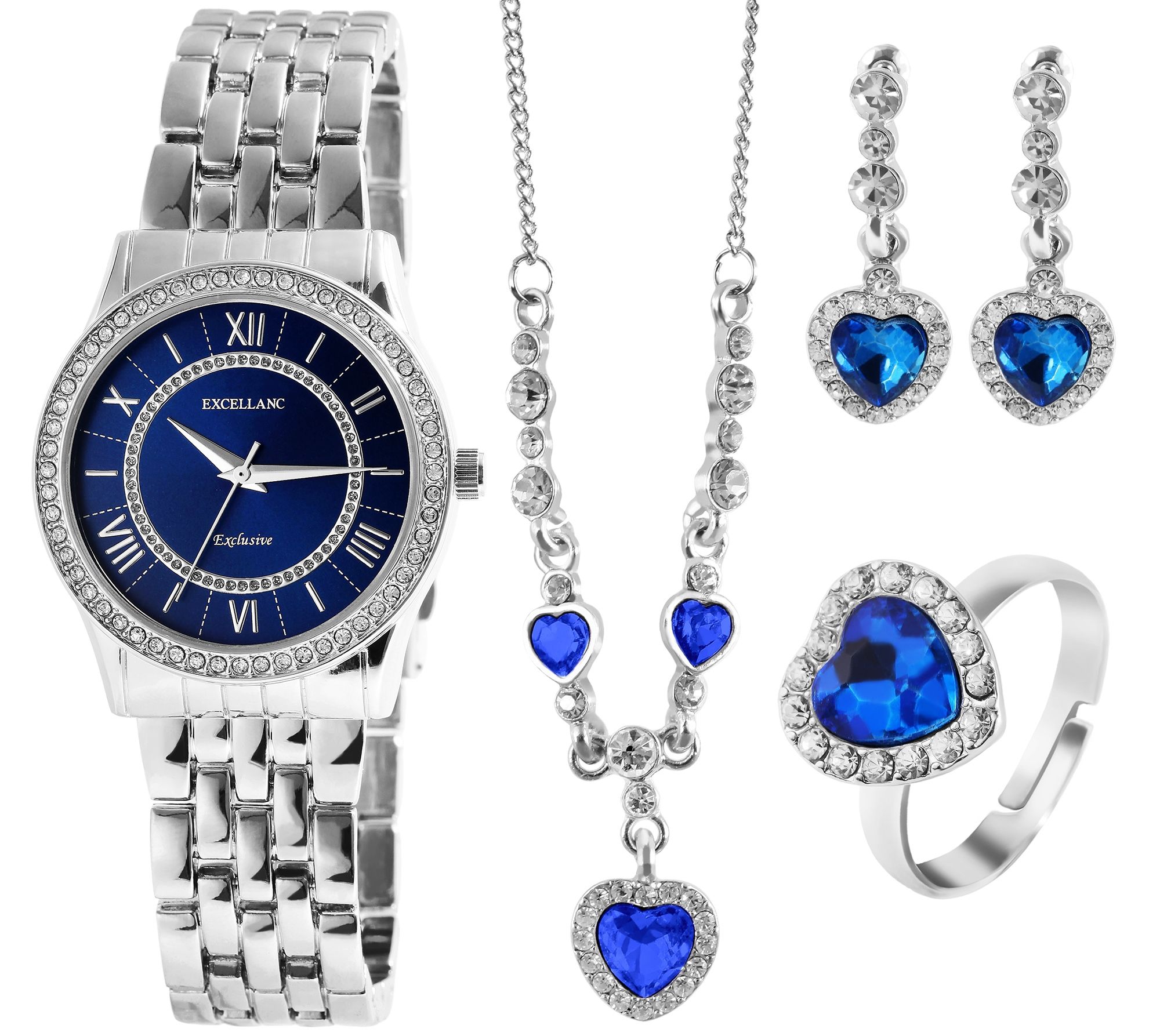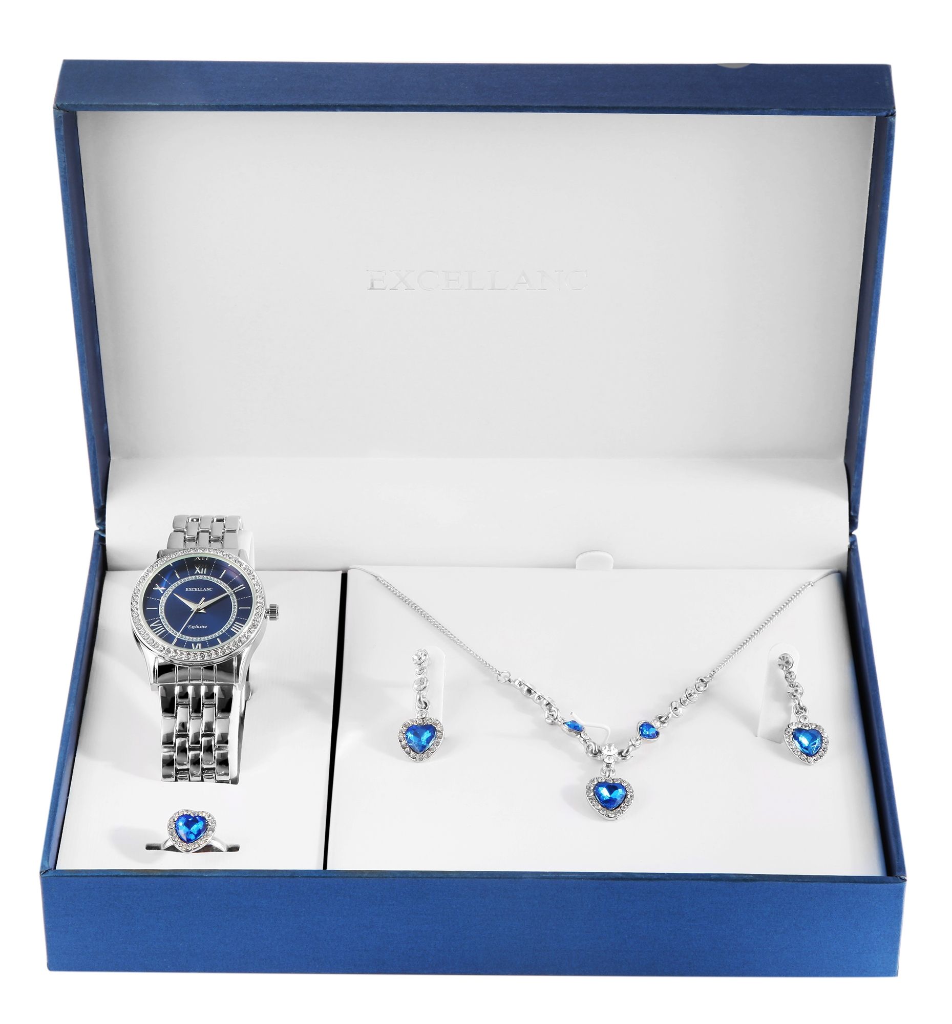 Produktinformationen "Excellanc Damen Geschenkeset mit Uhr, Halskette, Ring und Ohrringen, silberfarben/blau"