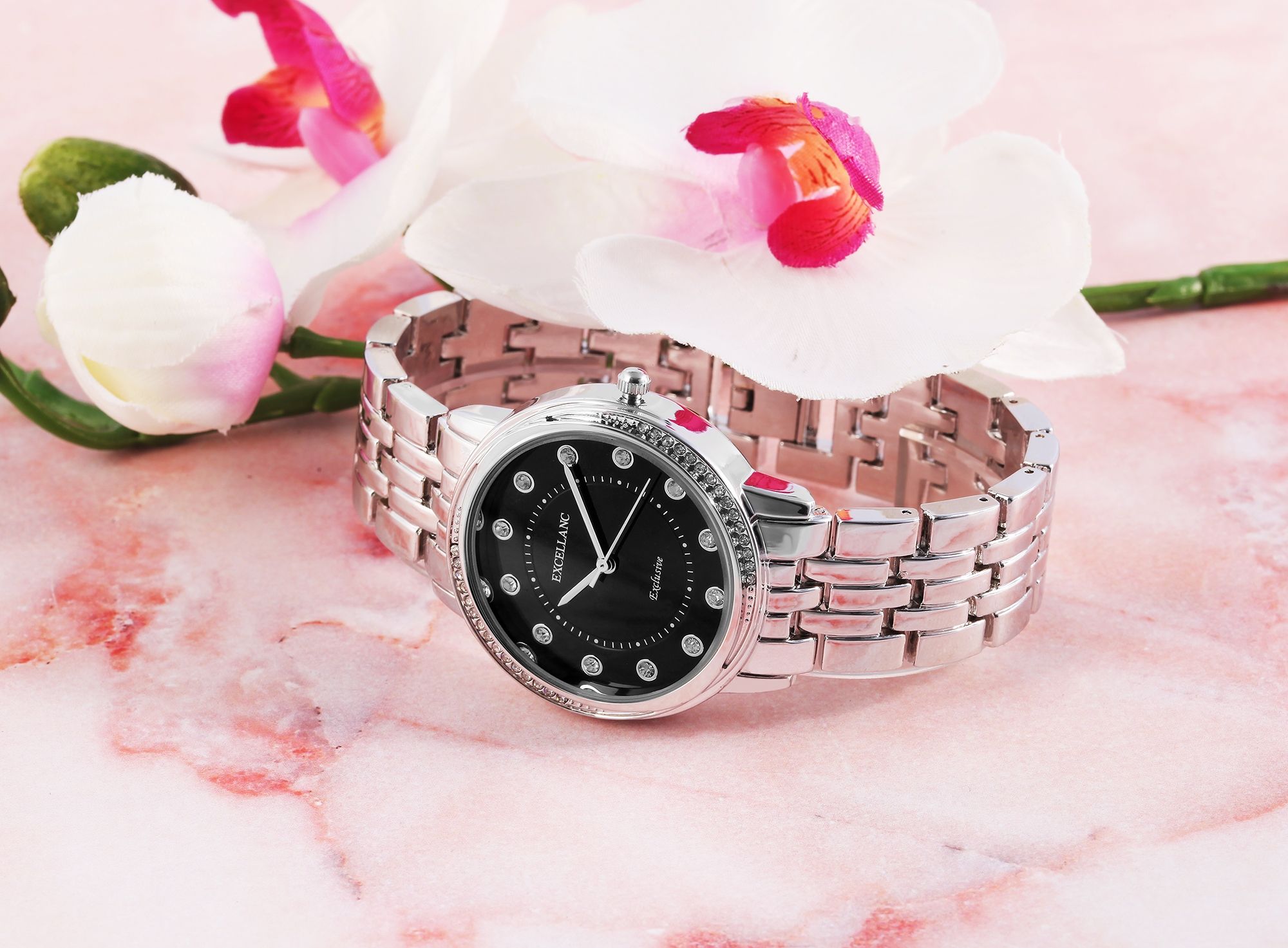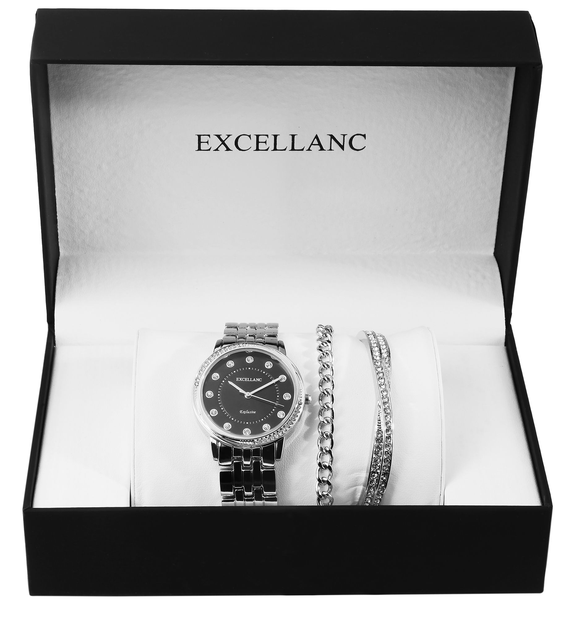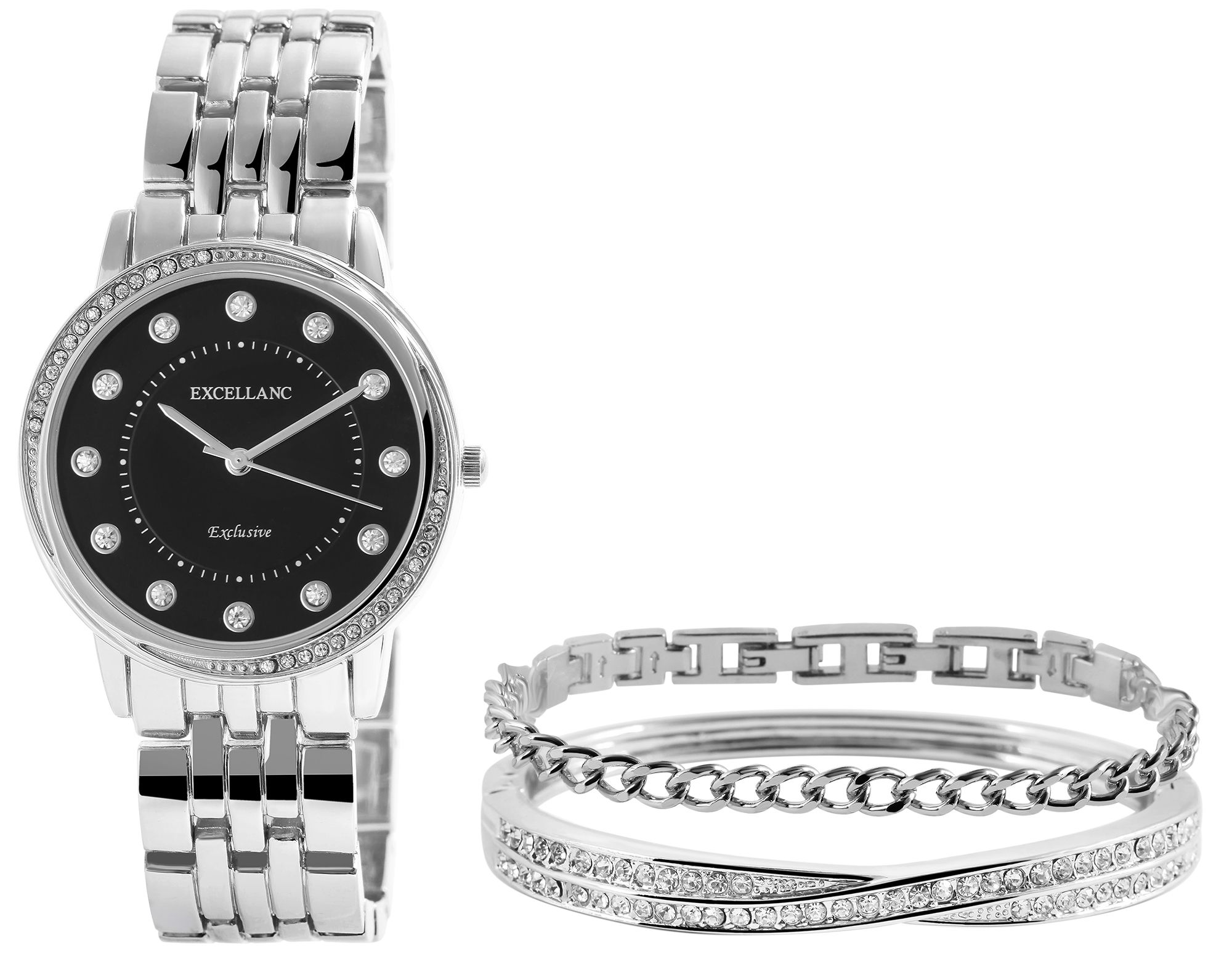Produktinformationen "Excellanc Damen-Geschenkset mit Armbanduhr, Armband und Armreif, silberfarben/schwarz"