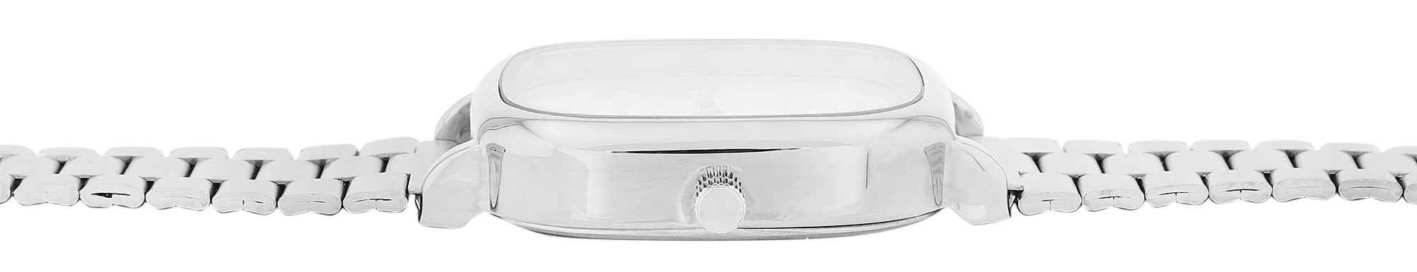 Die 3-Zeiger-Unisex-Uhr überzeugt mit einem kantigen Metallgehäuse (36 x 36 x 10 mm) und verleiht jedem Look eine besondere Note. Das Ziffernblatt mit klassischen gut lesbaren arabischen Ziffern und der praktischen Datumsanzeige auf dem Ziffernblatt runden das Design perfekt ab.