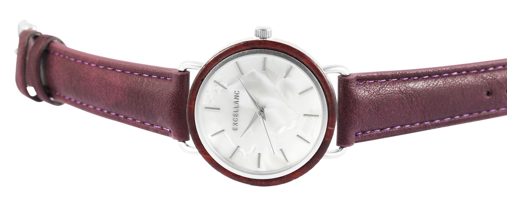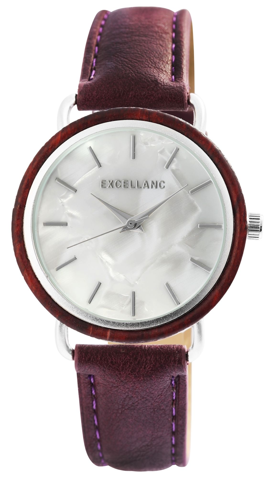Produktinformationen "Excellanc Damenuhr mit Band aus Lederimitat, Gehäusering aus Holz"