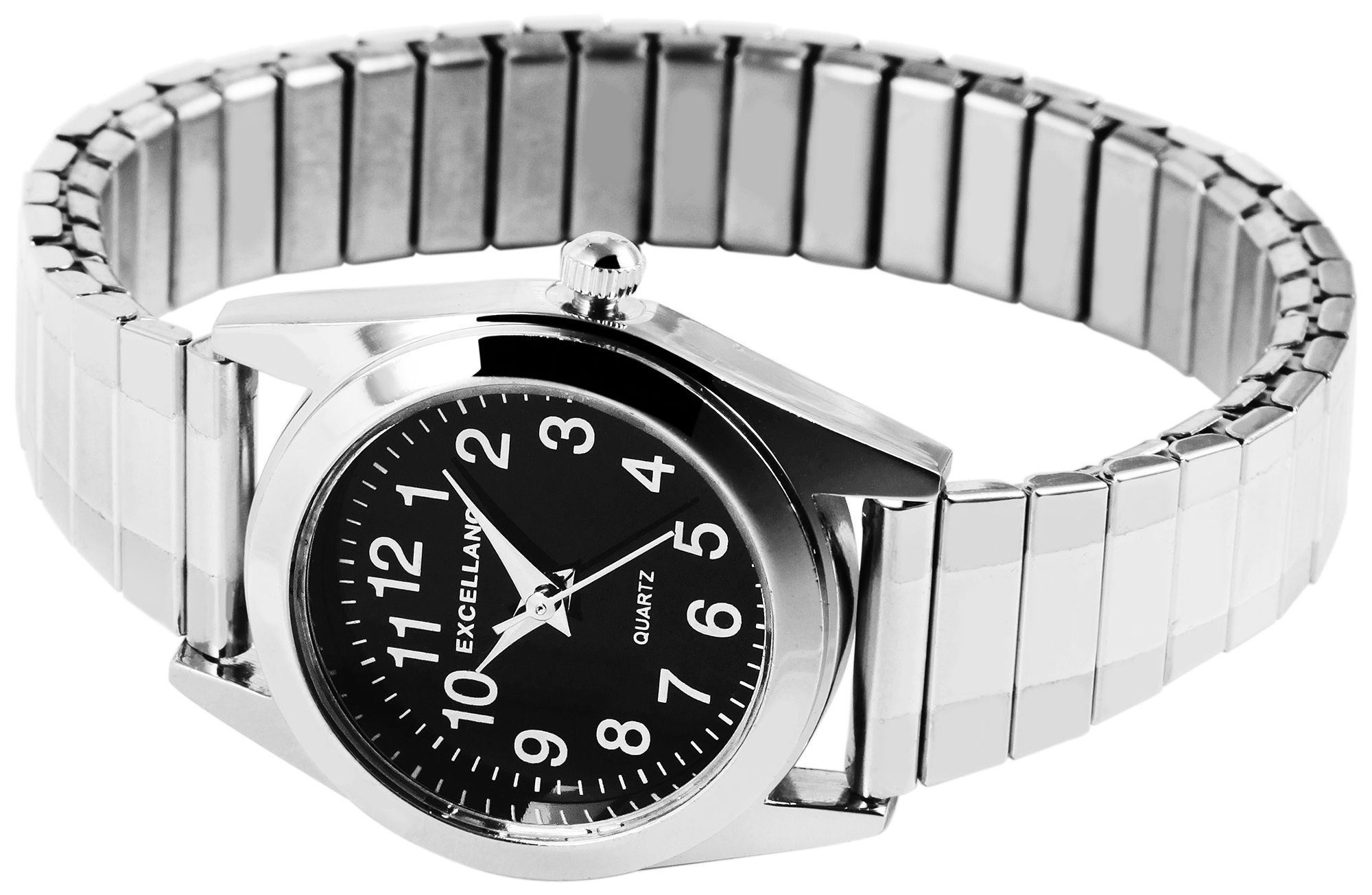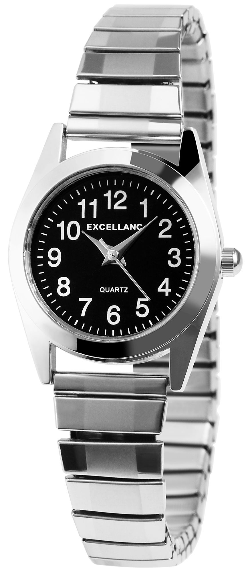 Produktinformationen "Excellanc Damenuhr mit Edelstahl-Zugarmband Ø 28 mm, silberfarben/ schwarz"