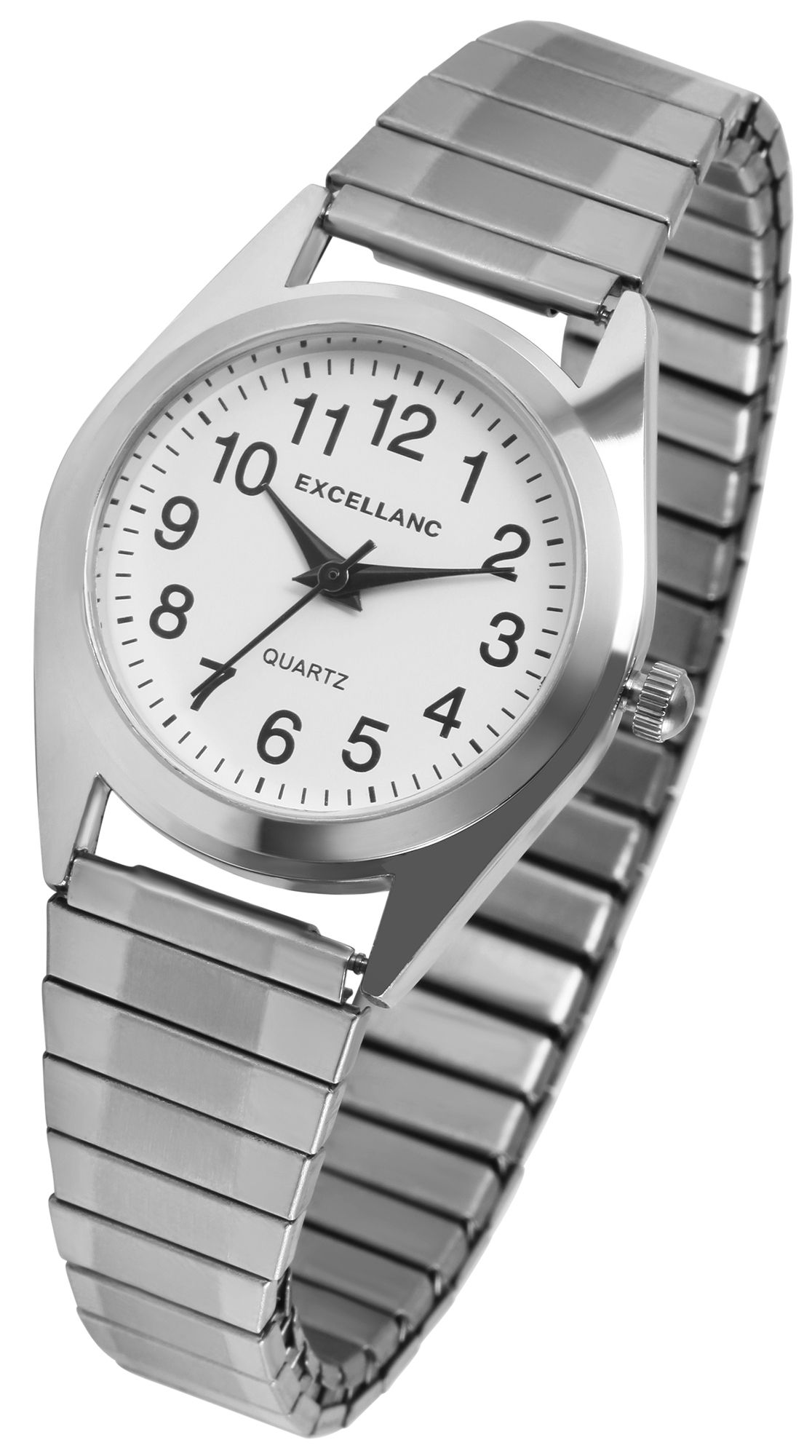 Produktinformationen "Excellanc Damenuhr mit Edelstahl-Zugarmband Ø 28 mm, silberfarben/ weiß"