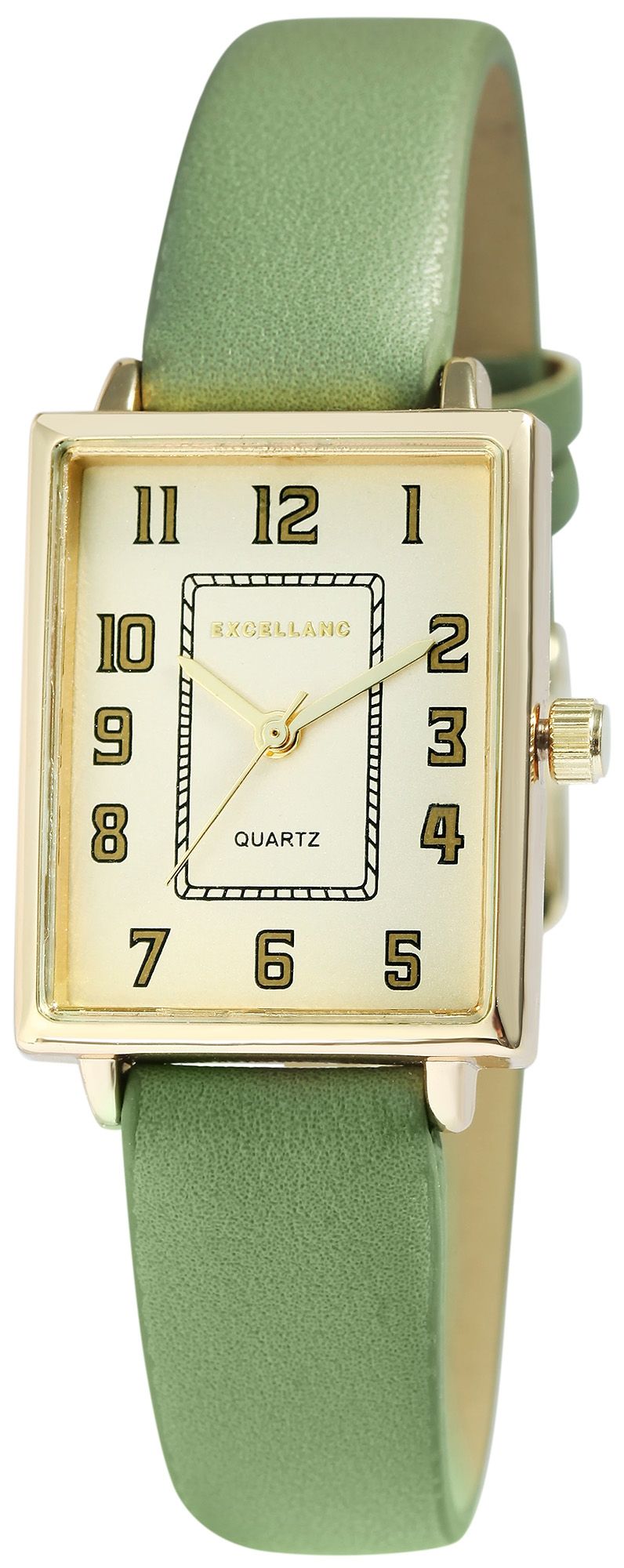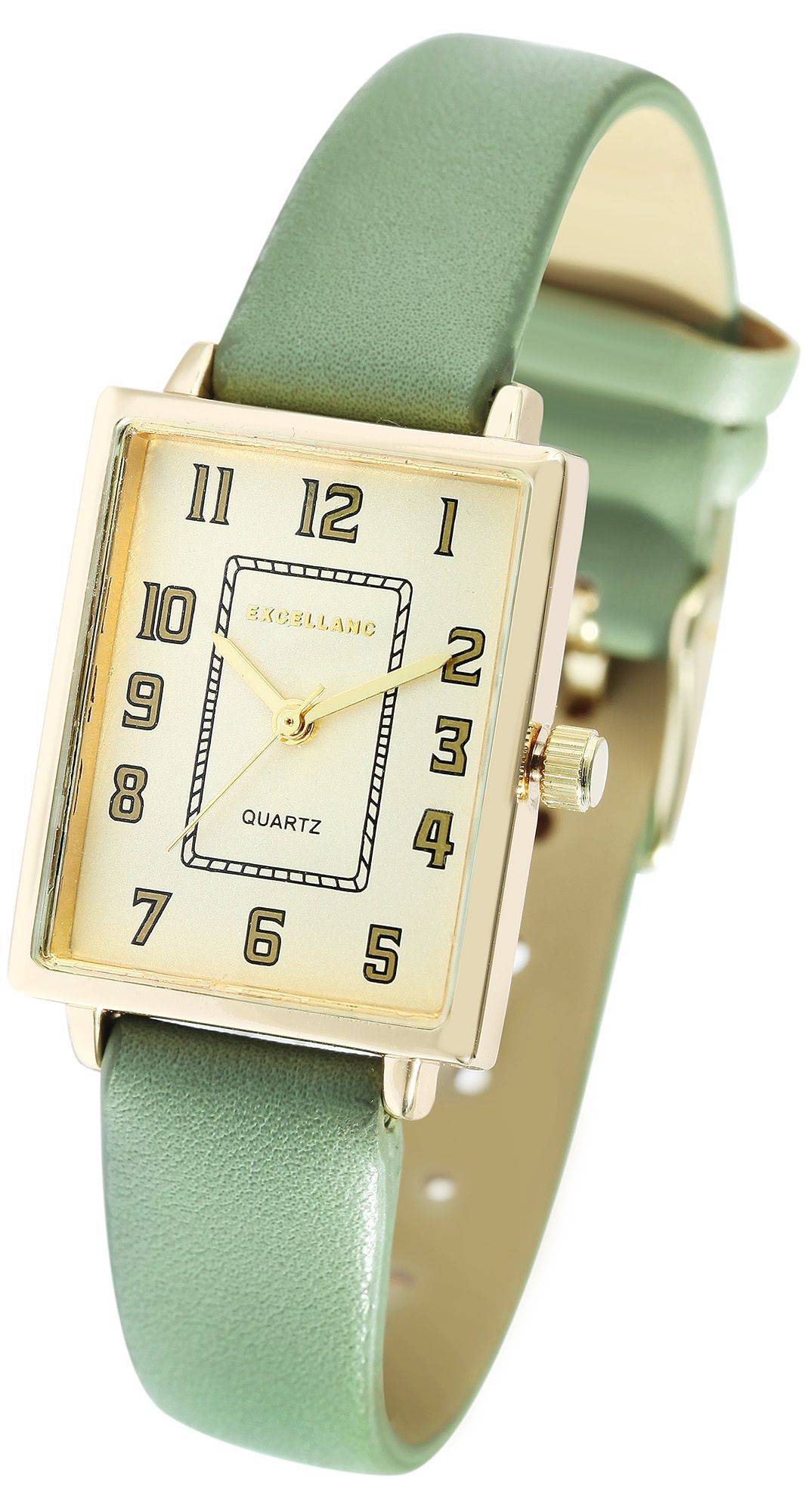 Produktinformationen "Excellanc Damenuhr mit Lederimitationsarmband, grün/goldfarben"