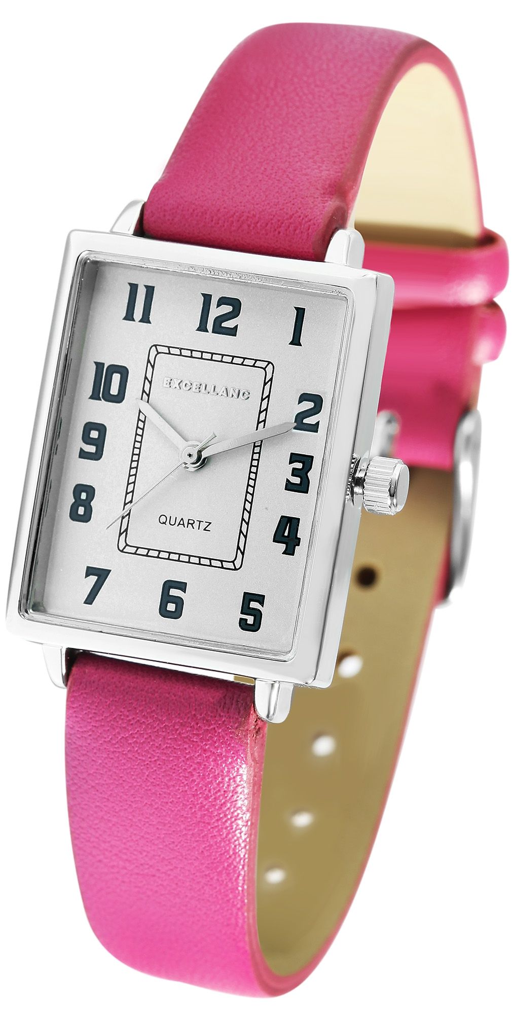 Produktinformationen "Excellanc Damenuhr mit Lederimitationsarmband, pink/silberfarben"