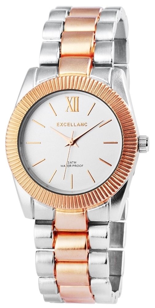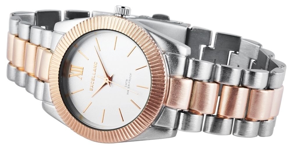 Die Analog Damenuhr der Marke Excellanc verfügt über ein Hochwertiges Quarzwerk. Das Metallarmband ist 20 mm breit und wird mit einer Edelstahlfaltschließe geöffnet. Die Gesamtlänge beträgt 18 cm. Das Metallgehäuse mit Mineralglas hat eine Abmessung von 36 mm und 9 mm Gehäusehöhe. Der Gehäusedeckel ist aus Edelstahl gefertigt. Die Uhr ist 3 ATM druckgeprüft.