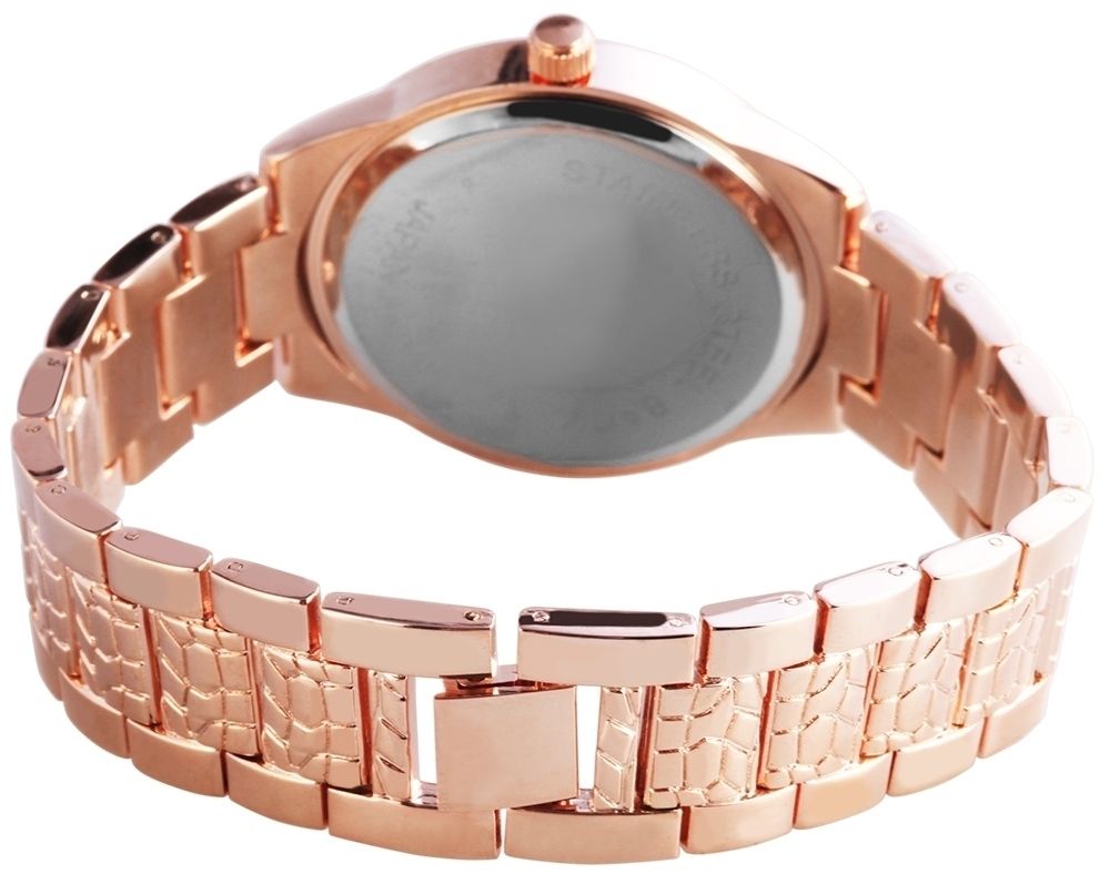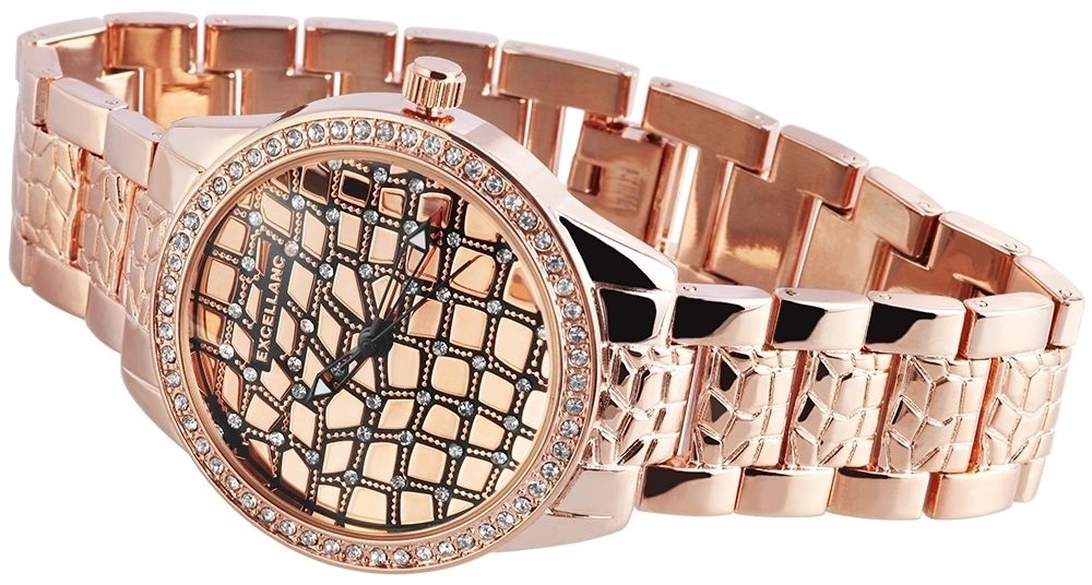 Die Analog Damenuhr der Marke Excellanc verfügt über ein Hochwertiges Quarzwerk. Das Metallarmband ist 20 mm breit und wird mit einem Clipverschluss geöffnet. Die Gesamtlänge beträgt 21 cm. Das Metallgehäuse mit Mineralglas hat eine Abmessung von 40 mm und 10 mm Gehäusehöhe. Aufgewertet wird das Gehäuse mit Crystal-Besatz. Der Gehäusedeckel ist aus Edelstahl gefertigt. Ein optisches Highlight ist auch der Crystal-Besatz auf dem Zifferblatt.