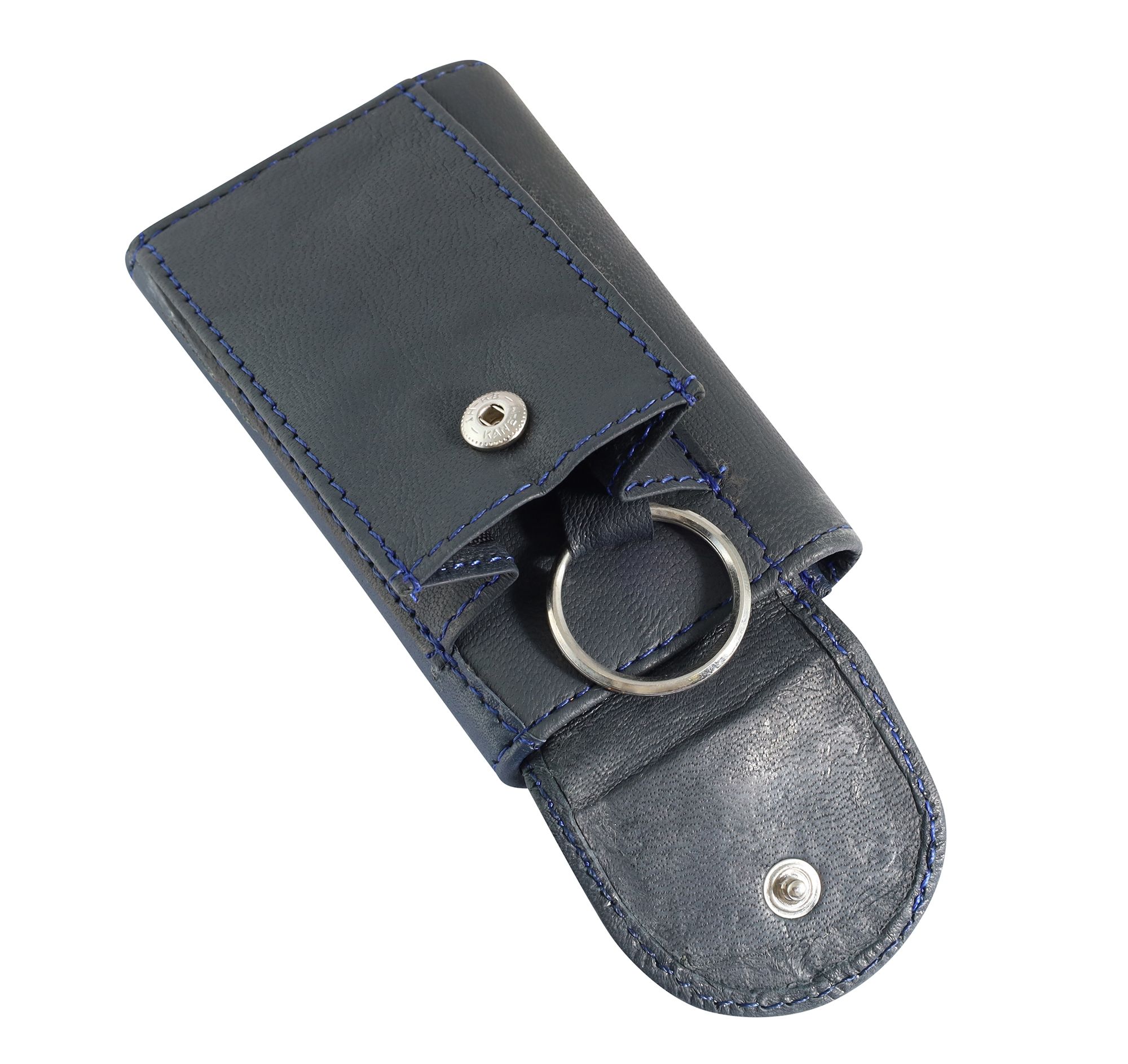 Die dunkelblaue Mini-Geldbörse im Hochformat der Marke Excellanc wurde aus echtem Leder gefertigt. Das Innenfutter besteht ebenfalls aus Echtleder. Die Naht, mit der die Geldbörse vernäht ist und für Stabilität und Halt sorgt, ist auch dunkelblau. Trotz ihrer Größe bietet das Portemonnaie dennoch einiges an Stauraum und zeigt sich als praktischer Begleiter für Sie und Ihn. Die Geldbörse verfügt über 2 Geldscheinfächer, 1 Münzfach mit Druckknopfverschluss und 1 praktisches Schlüsselfach. In diesem Schlüsselfach befindet sich an einem ca. 7 cm langem Lederriemen ein Schlüsselring mit einem Durchmesser von 25 mm. Dieser eignet sich hervorragend zum Anbringen von Schlüsseln, die sich praktisch verstauen lassen. Die Größe ergibt sich aus einer Länge von 9,1 cm, einer Breite von 6 cm und einer Stärke von 2,6 cm. Klein und kompakt ist der Geldbeutel ein idealer Gefährte zu zahlreichen Gelegenheiten und eignet sich hervorragend als Geschenk für die Liebsten.