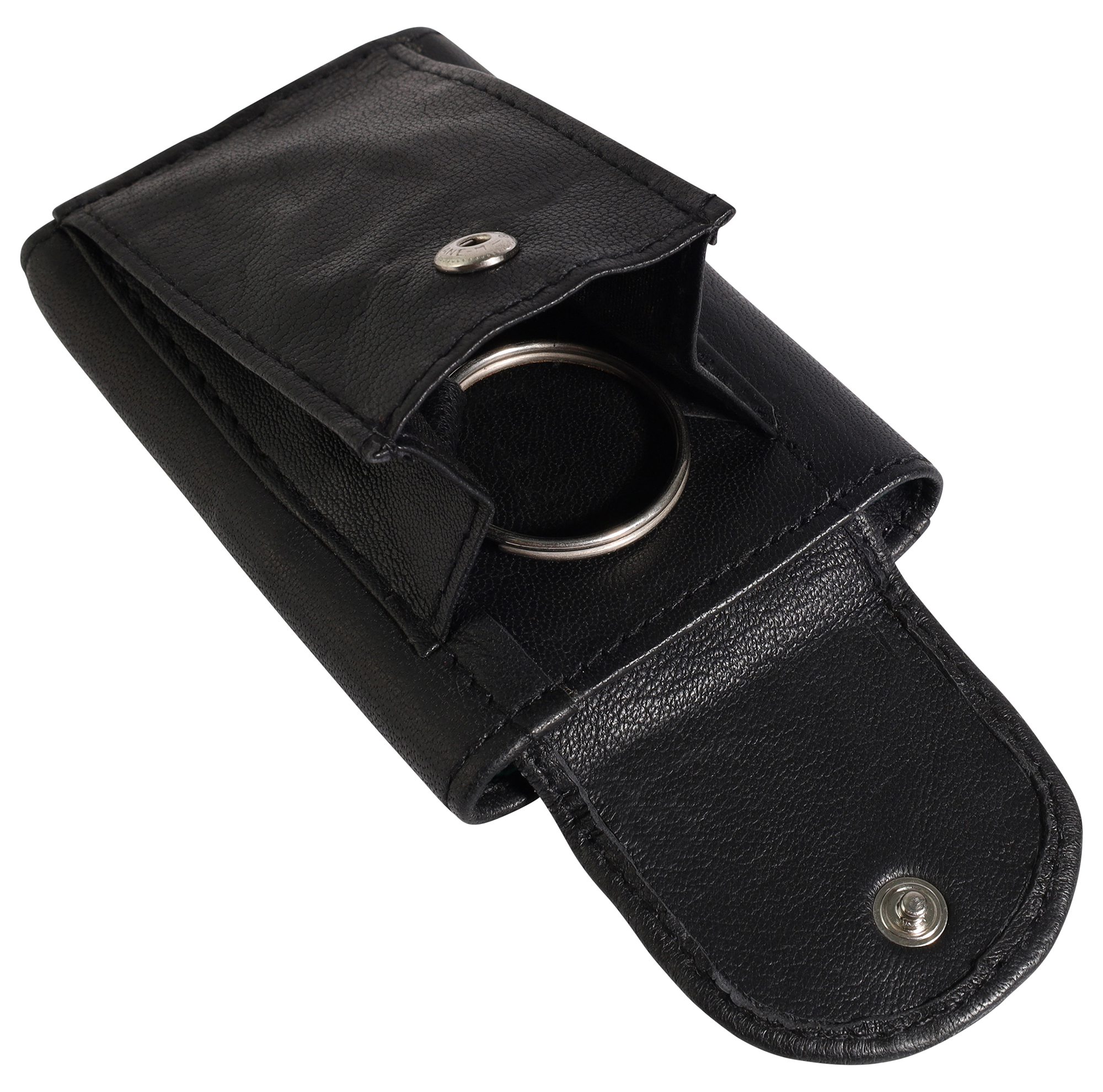 Die schwarze Mini-Geldbörse im Hochformat der Marke Excellanc wurde aus echtem Leder gefertigt. Das braune Innenfutter besteht ebenfalls aus Echtleder. Die Naht, mit der die Geldbörse vernäht ist und für Stabilität und Halt sorgt, ist auch schwarz. Das Innenfutter der Geldbörse ist khaki. Trotz ihrer Größe bietet das Portemonnaie dennoch einiges an Stauraum und zeigt sich als praktischer Begleiter für Sie und Ihn. Die Geldbörse verfügt über 2 Geldscheinfächer, 1 Münzfach mit Druckknopfverschluss und 1 praktisches Schlüsselfach. In diesem Schlüsselfach befindet sich an einem ca. 7 cm langem Lederriemen ein Schlüsselring mit einem Durchmesser von 25 mm. Dieser eignet sich hervorragend zum Anbringen von Schlüsseln, die sich praktisch verstauen lassen. Die Größe ergibt sich aus einer Länge von 9,1 cm, einer Breite von 6 cm und einer Stärke von 2,6 cm. Klein und kompakt ist der Geldbeutel ein idealer Gefährte zu zahlreichen Gelegenheiten und eignet sich hervorragend als Geschenk für die Liebsten.