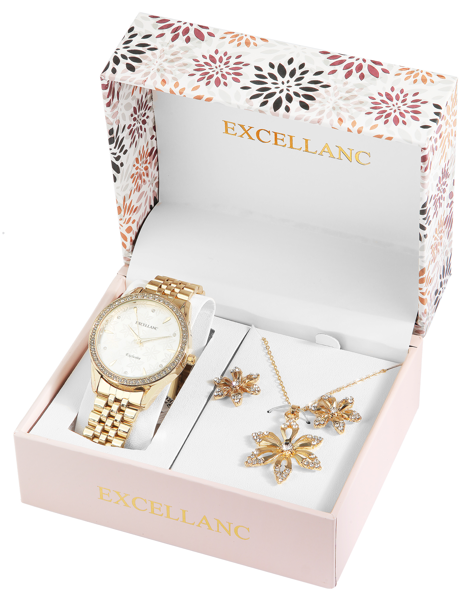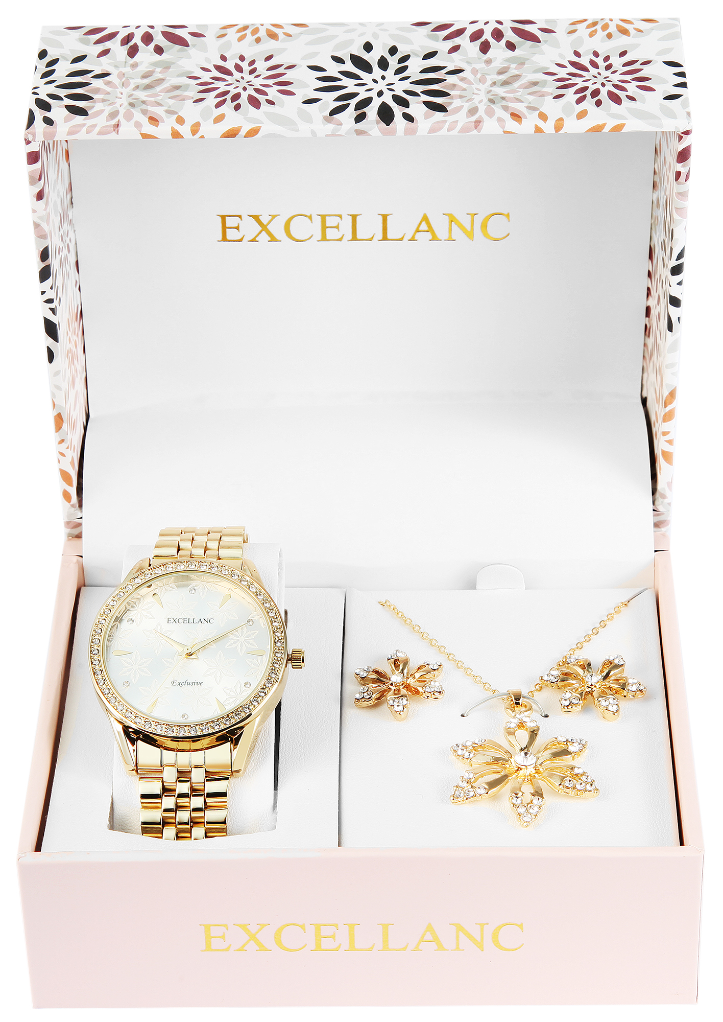 Produktinformationen "Excellanc Geschenkset mit Damenarmbanduhr, Halskette und Ohrringen, goldfarben"