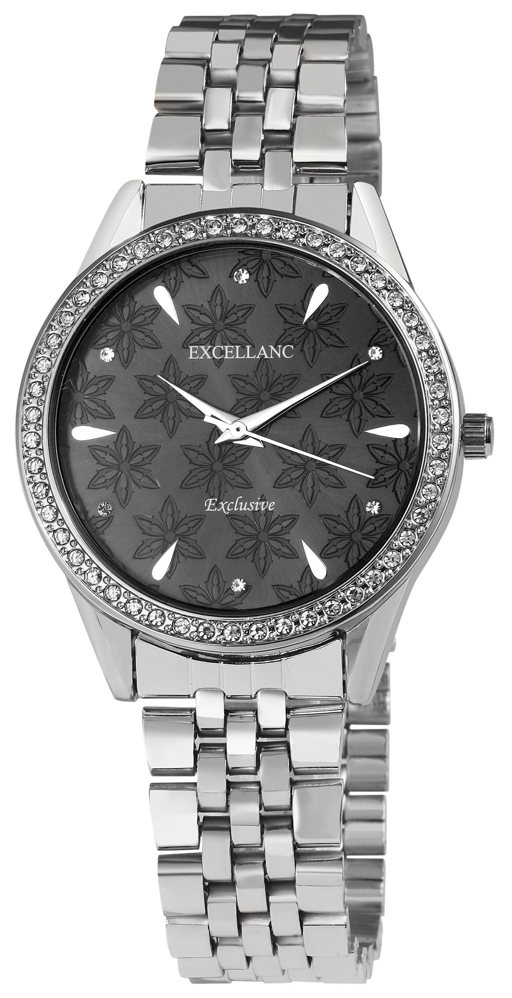 Das Geschenkset der Marke Excellanc besteht aus einer Damenarmbanduhr, einer Halskette und einem Paar Ohrringen. Die Schmuckstücke sind silberfarben, aufeinander abgestimmt und lassen sich wunderbar in Kombination tragen. Die analoge 3-Zeiger Damenarmbanduhr, dessen Lünette rundherum mit funkelnden Similisteinen besetzt ist, verfügt über ein hochwertiges Quarzuhrwerk. Das silberfarbene Metallarmband ist am Anstoß 18 mm breit und lässt sich über eine Faltschließe öffnen und schließen. Die Gesamtlänge der Uhr beträgt 21,5 cm. Das silberfarbene Metallgehäuse mit Mineralglas hat eine Abmessung von 38 mm im Durchmesser und einer Gehäusehöhe von 9 mm. Der Gehäuseboden ist aus Edelstahl gefertigt. In dem schwarzen Zifferblatt spiegeln sich die floralen Motive wieder, zudem dienen Similisteine als Punktindexe. Die Zeiger und Indexe sind ebenfalls silberfarbig und runden das Gesamtbild harmonisch ab. Die modische Ankerkette ist 46 cm lang und kann bei Bedarf um weitere 6 cm verlängert werden. Verschlossen wird sie mit einem praktischen Karabinerhaken. Zudem wird sie durch einen eleganten Anhänger in Form einer Blume geschmückt, der eine Länge von 36 mm, eine Breite von 31 mm und eine Stärke von 4,5 mm misst. Die Ohrstecker weisen die gleiche Optik des Anhängers auf. Sie haben eine Länge von 21 mm, eine Breite von 18 mm und eine Stärke von 3 mm. Mit einer Ohrmutter können sie am Ohrloch gesichert werden. Wie der Anhänger auch sind die Ohrstecker mit Similisteinen besetzt. Rundum ist das Damenset ein toller Blickfang und eignet sich fantastisch als Geschenk. Geliefert wird das Set in einer hochwertigen Verpackung.
