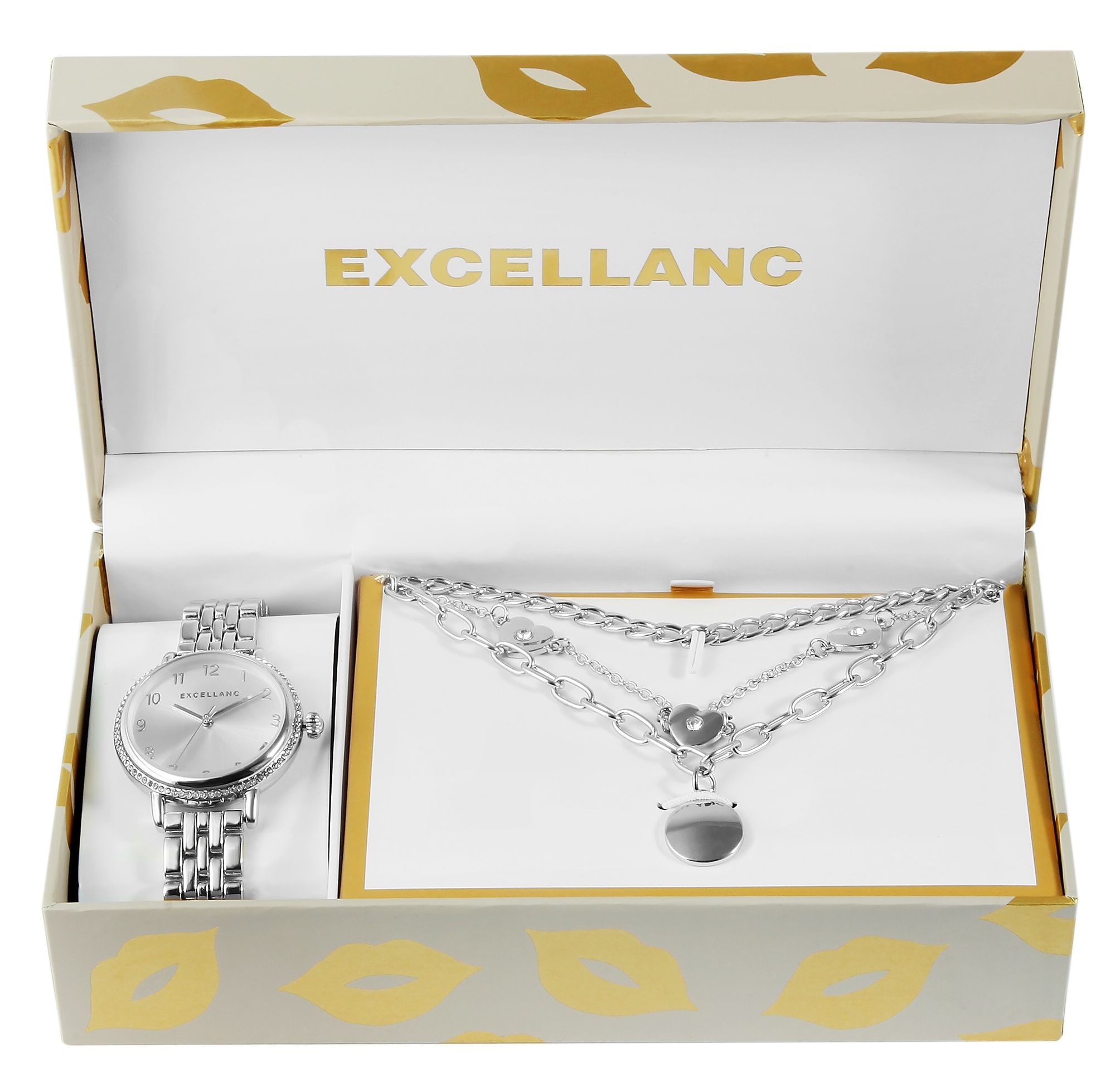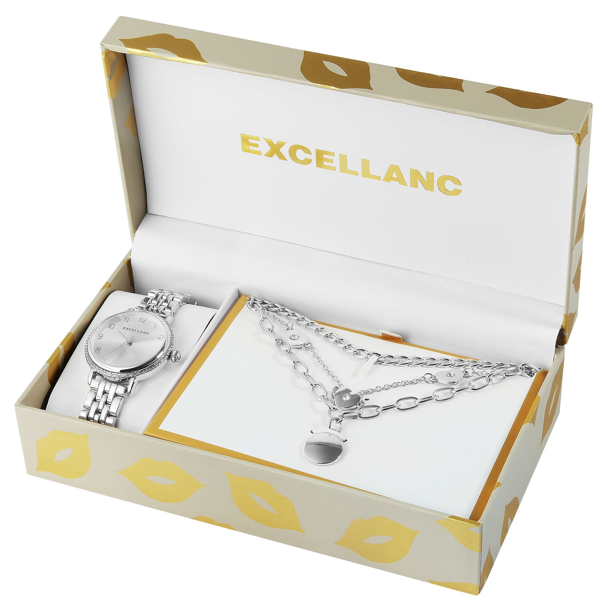 Produktinformationen "Excellanc Geschenkset mit Damenarmbanduhr und drei Halsketten, silberfarben"
