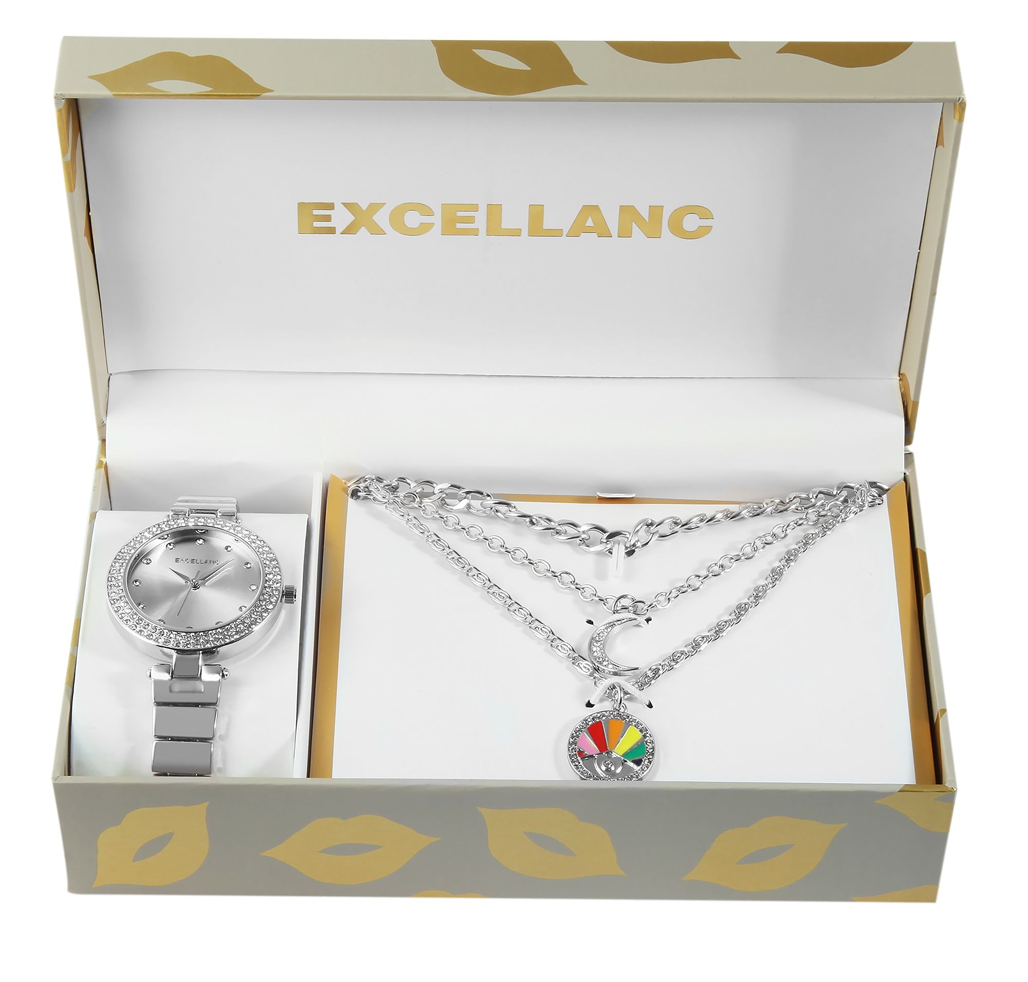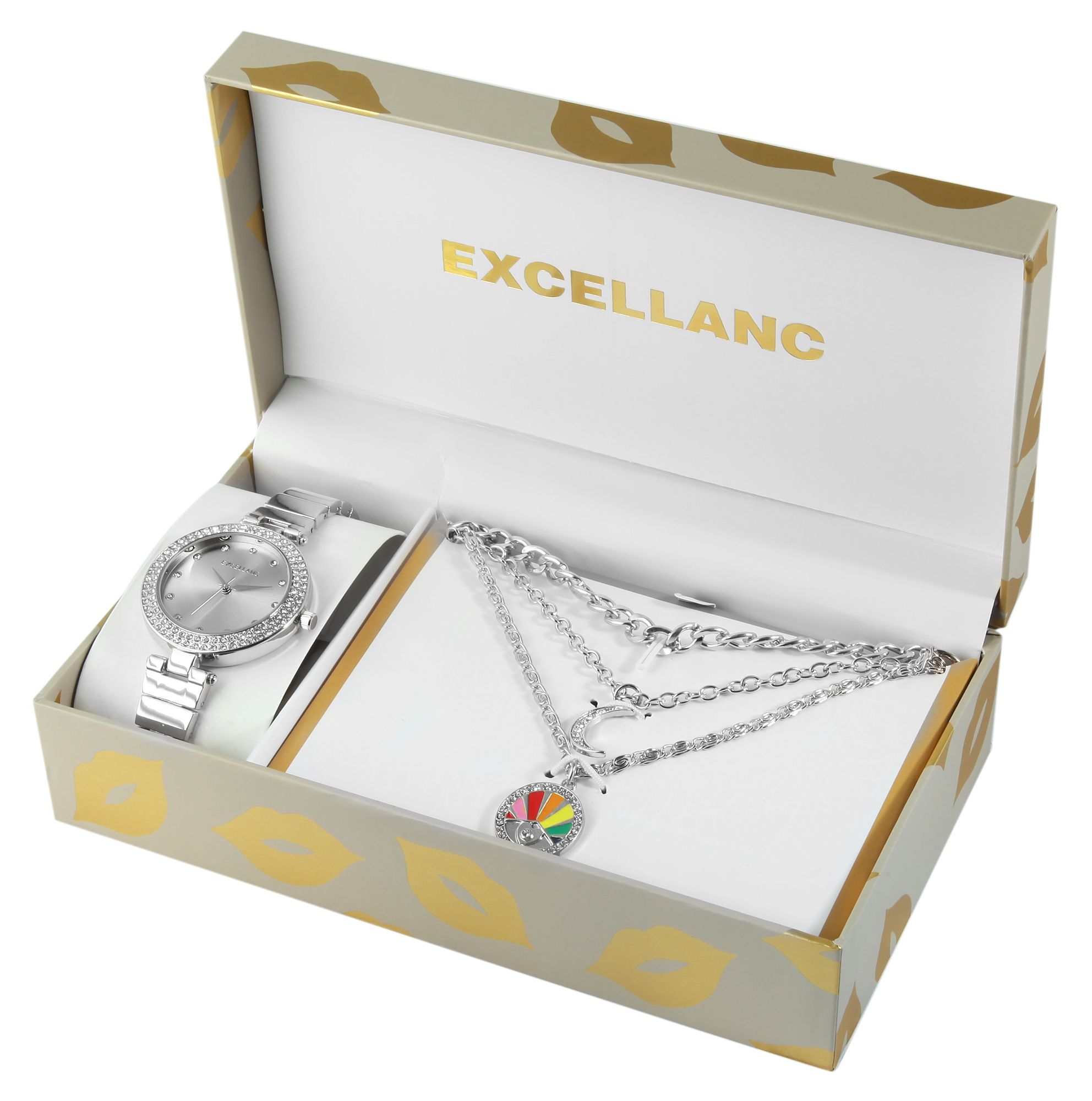 Produktinformationen "Excellanc Geschenkset mit Damenarmbanduhr und drei Ketten, silberfarben"