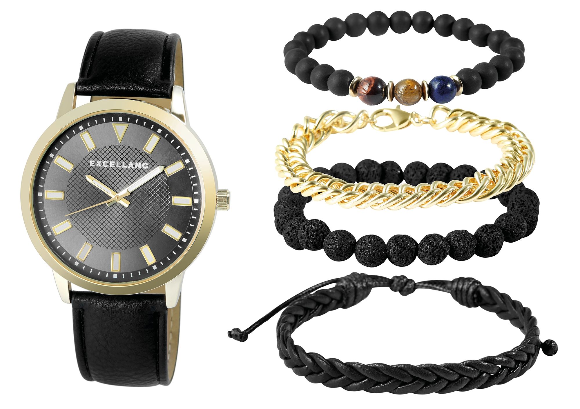 Produktinformationen "Excellanc Geschenkset mit Herrenarmbanduhr und vier Armbändern, schwarz/goldfarben"