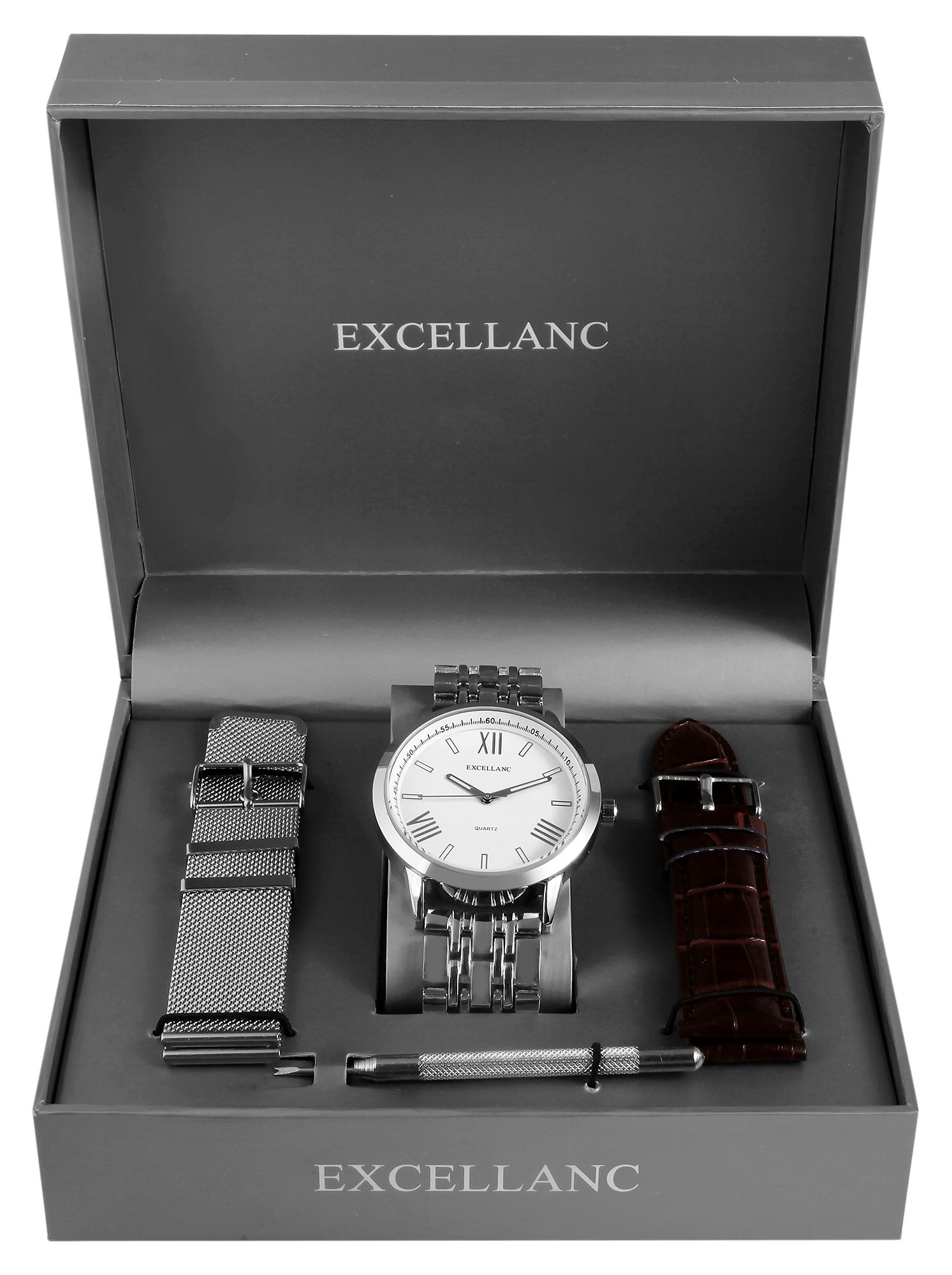 Produktinformationen "Excellanc Geschenkset mit Herrenuhr und zwei Wechselarmbändern, silberfarben"