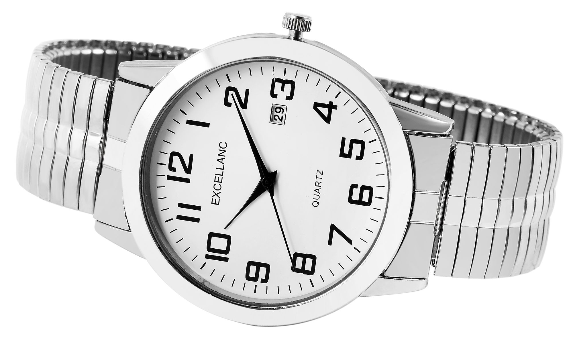 Produktinformationen "Excellanc Herrenuhr mit Edelstahlzugarmband, Datumsanzeige, silberfarben/weiß"