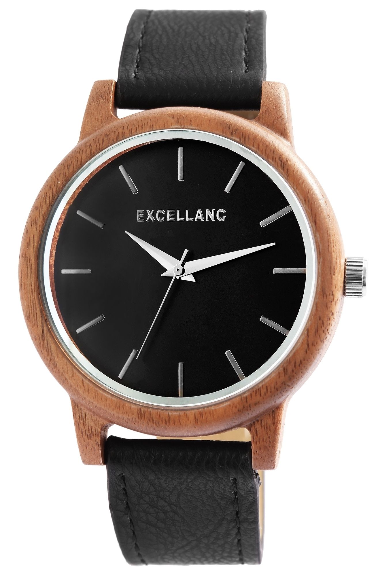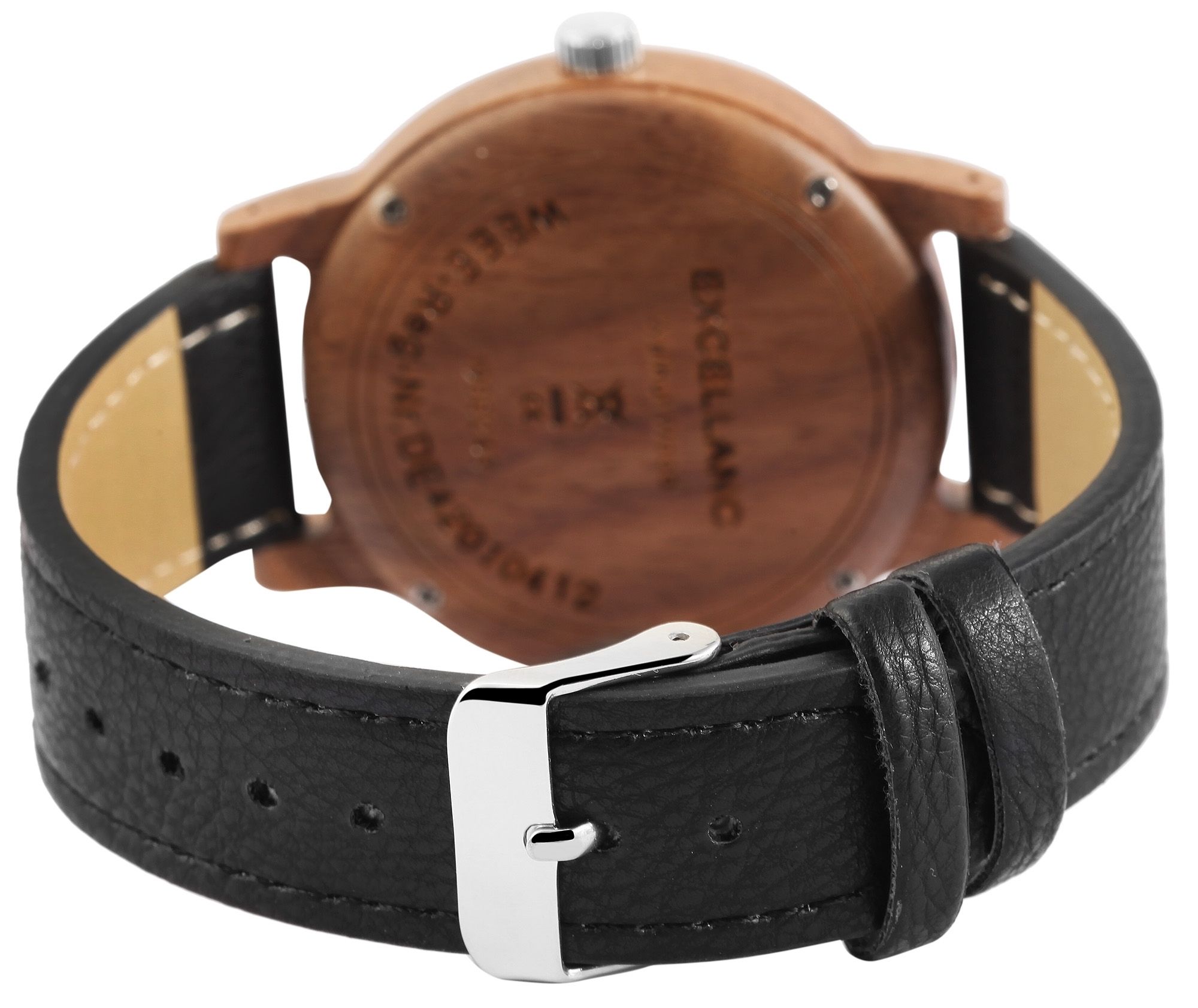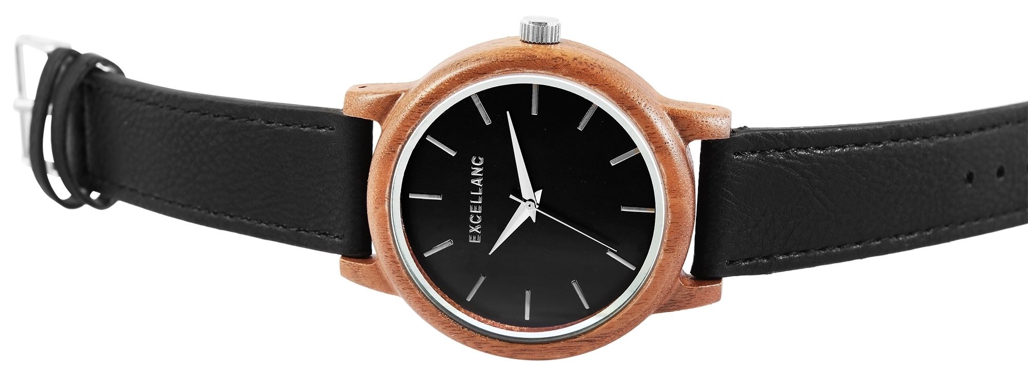 Produktinformationen "Excellanc Holzuhr mit Band aus Lederimitat"