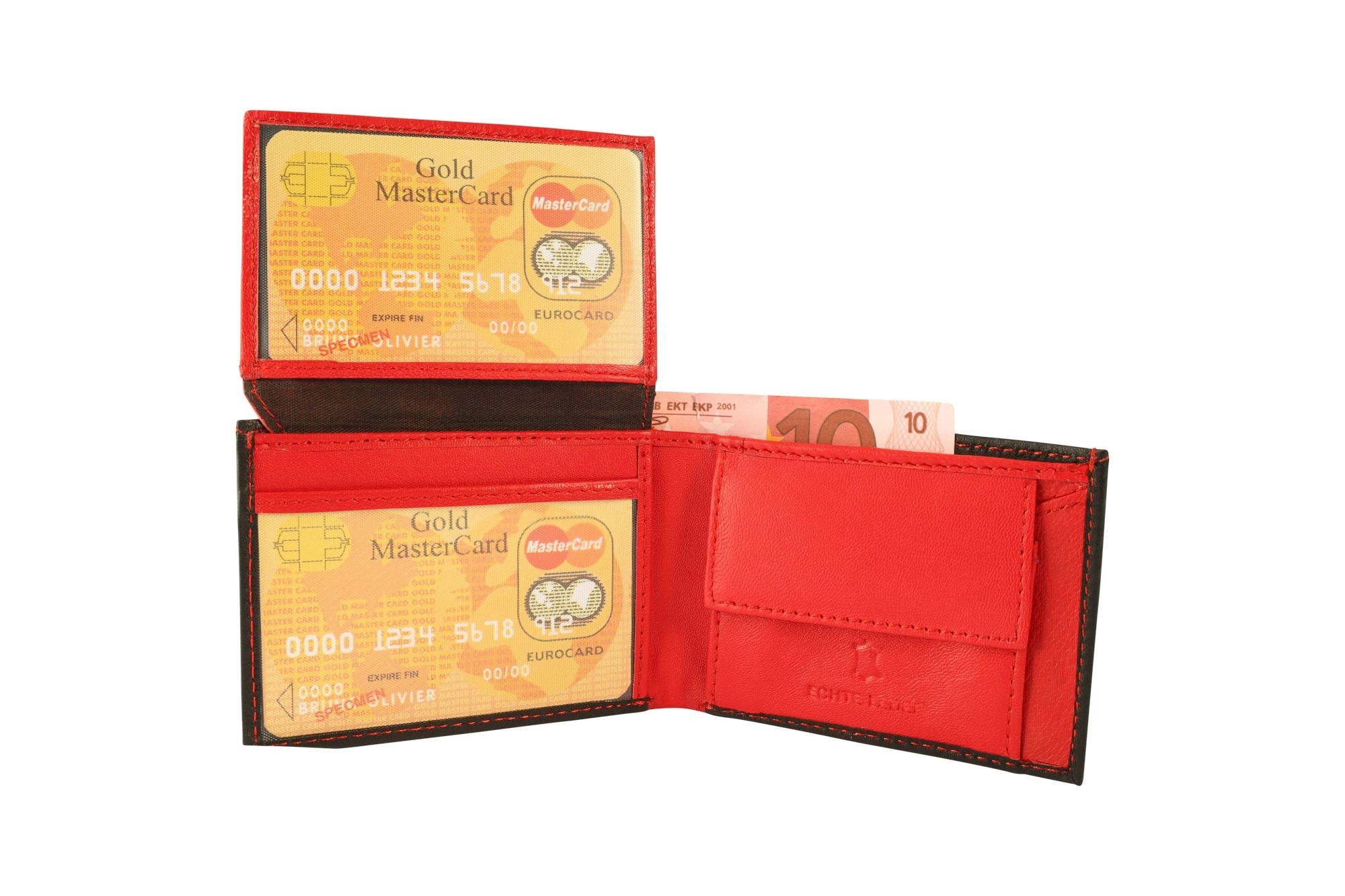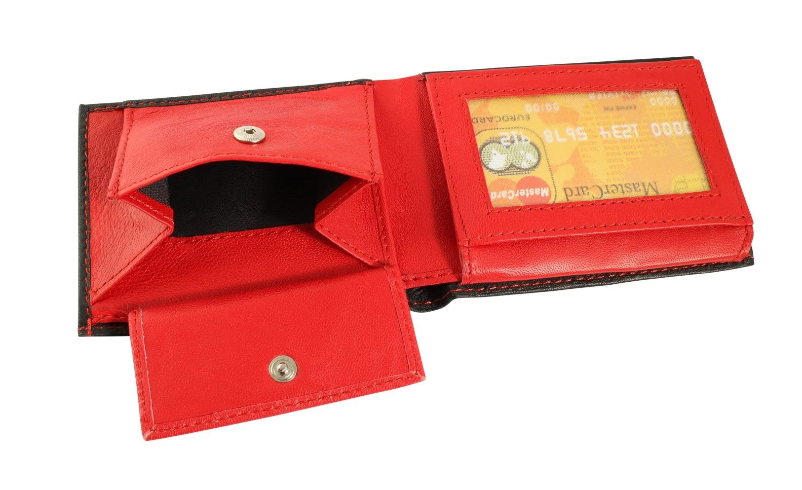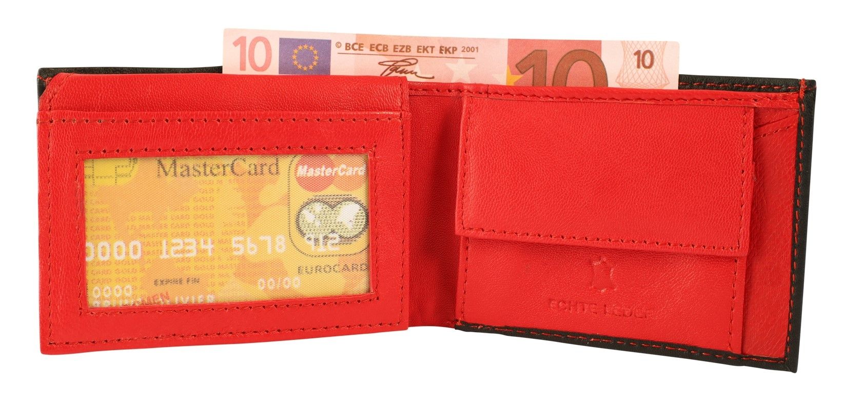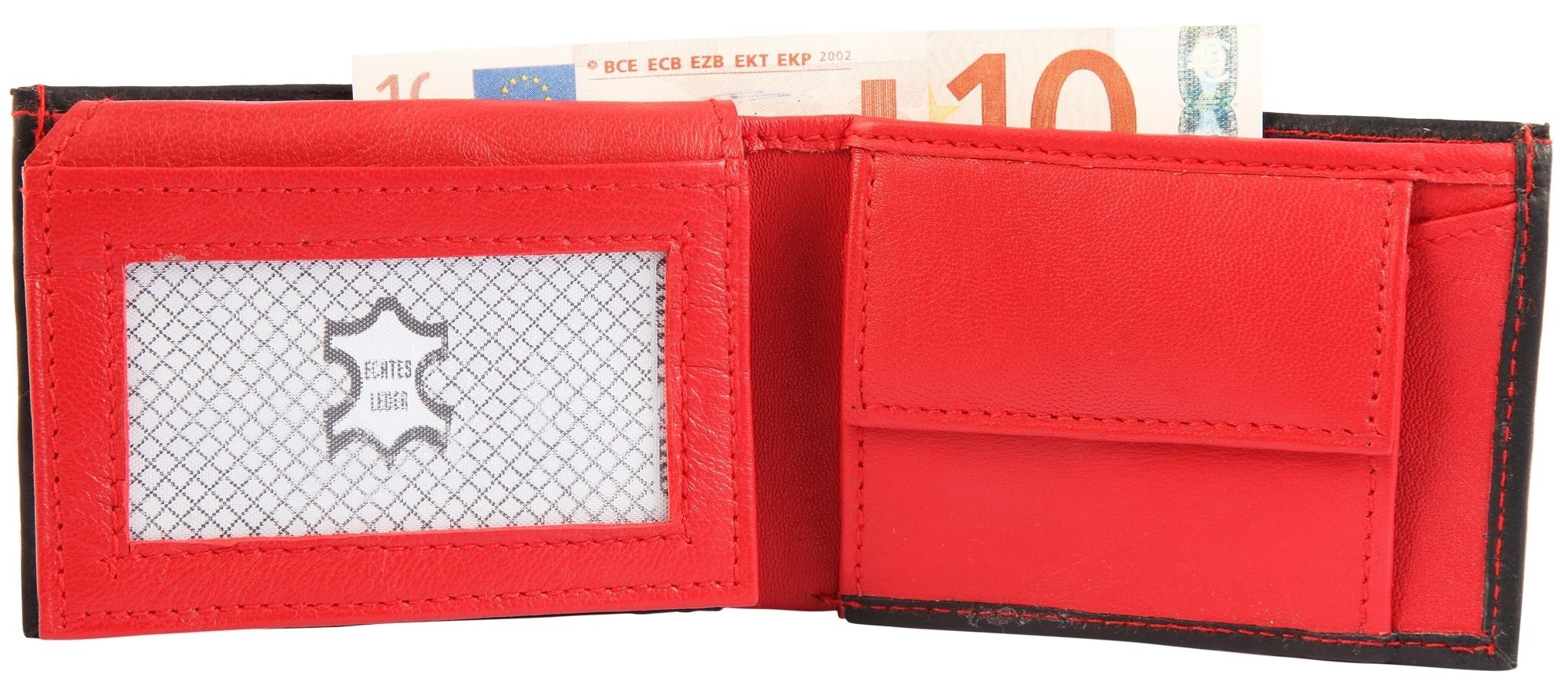Produktinformationen "Excellanc Mini-Geldbörse aus Echtleder, Querformat, schwarz/ rot"