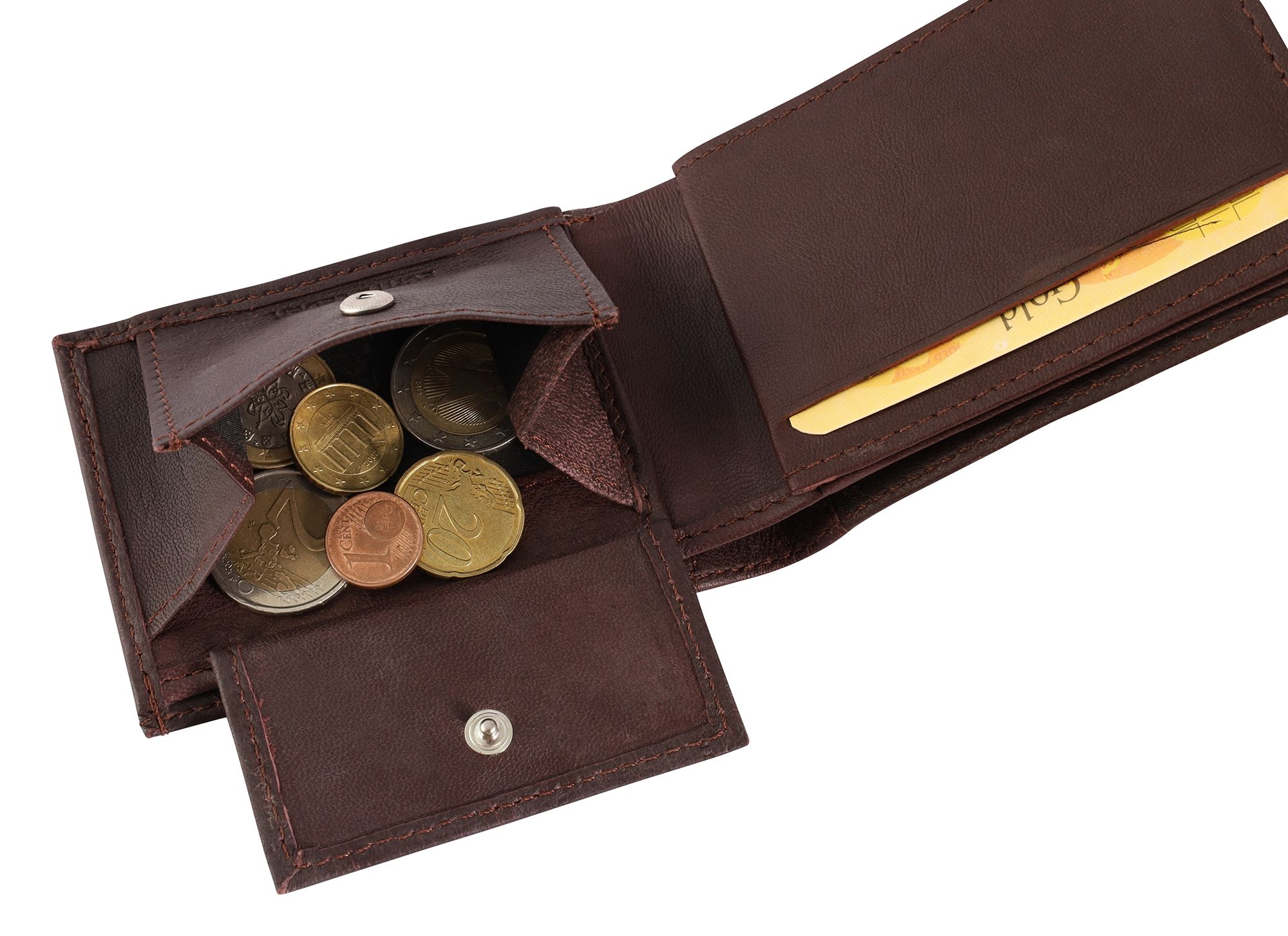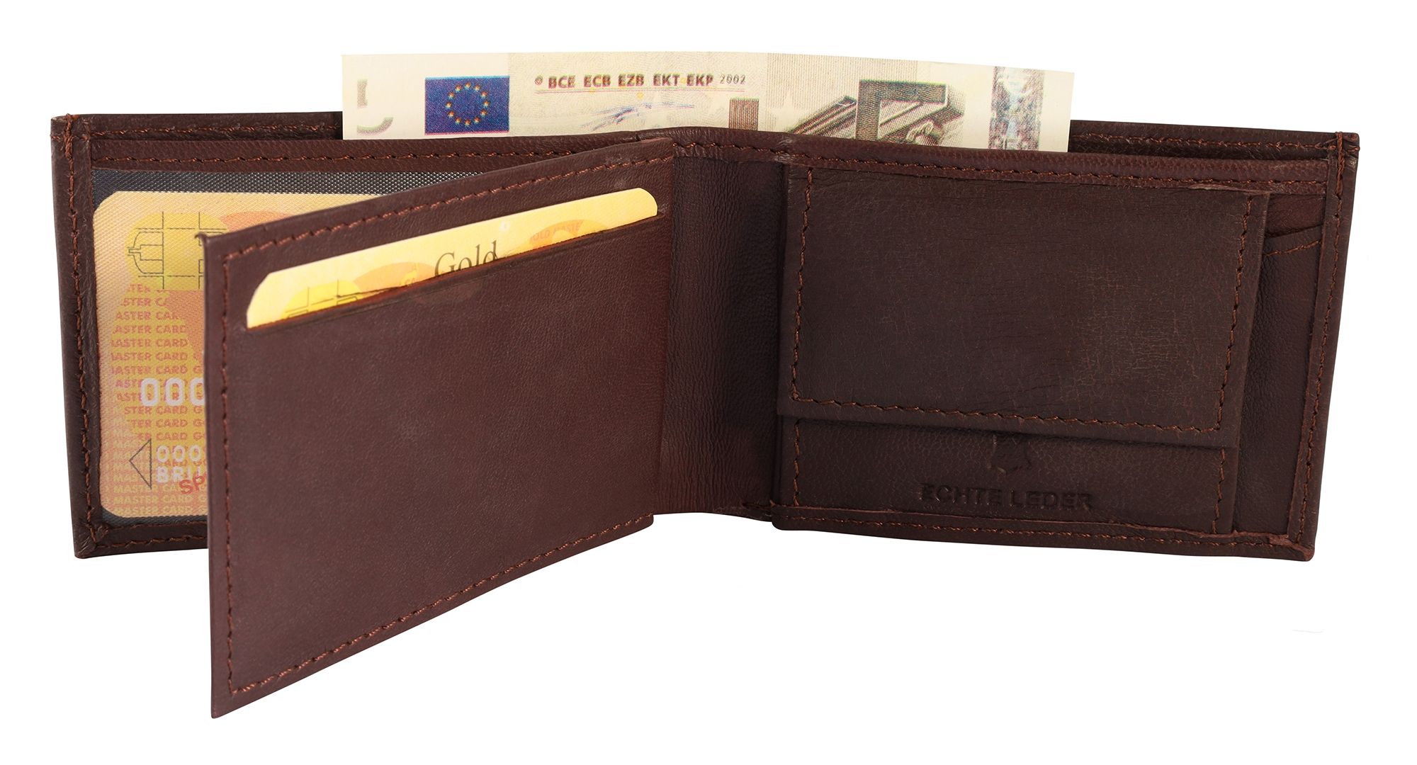 Die Mini-Geldbörse im Querformat der Marke Excellanc wurde aus echtem Leder gefertigt. Das Innenfutter besteht aus Syntetik. Trotz seiner Größe bietet das Portemonnaie dennoch einiges an Stauraum und zeigt sich als praktischer Begleiter für Sie und Ihn. Die Geldbörse verfügt über 1 Geldscheinfach, 1 Münzfach mit Druckknopfverschluss, 3 Kreditkartenfächer/ Ausweisfächer und 2 Einsteckfächer. Die Größe ergibt sich aus einer Länge von 7,2 cm, einer Breite von 10,5 cm und einer Stärke von 1,7 cm. Klein und kompakt ist der Geldbeutel ein idealer Gefährte zu zahlreichen Gelegenheiten und eignet sich hervorragend als Geschenk für die Liebsten.