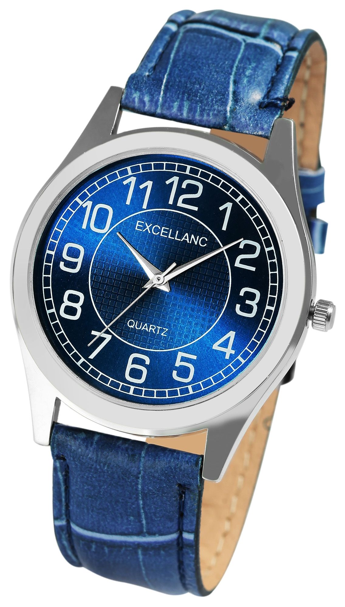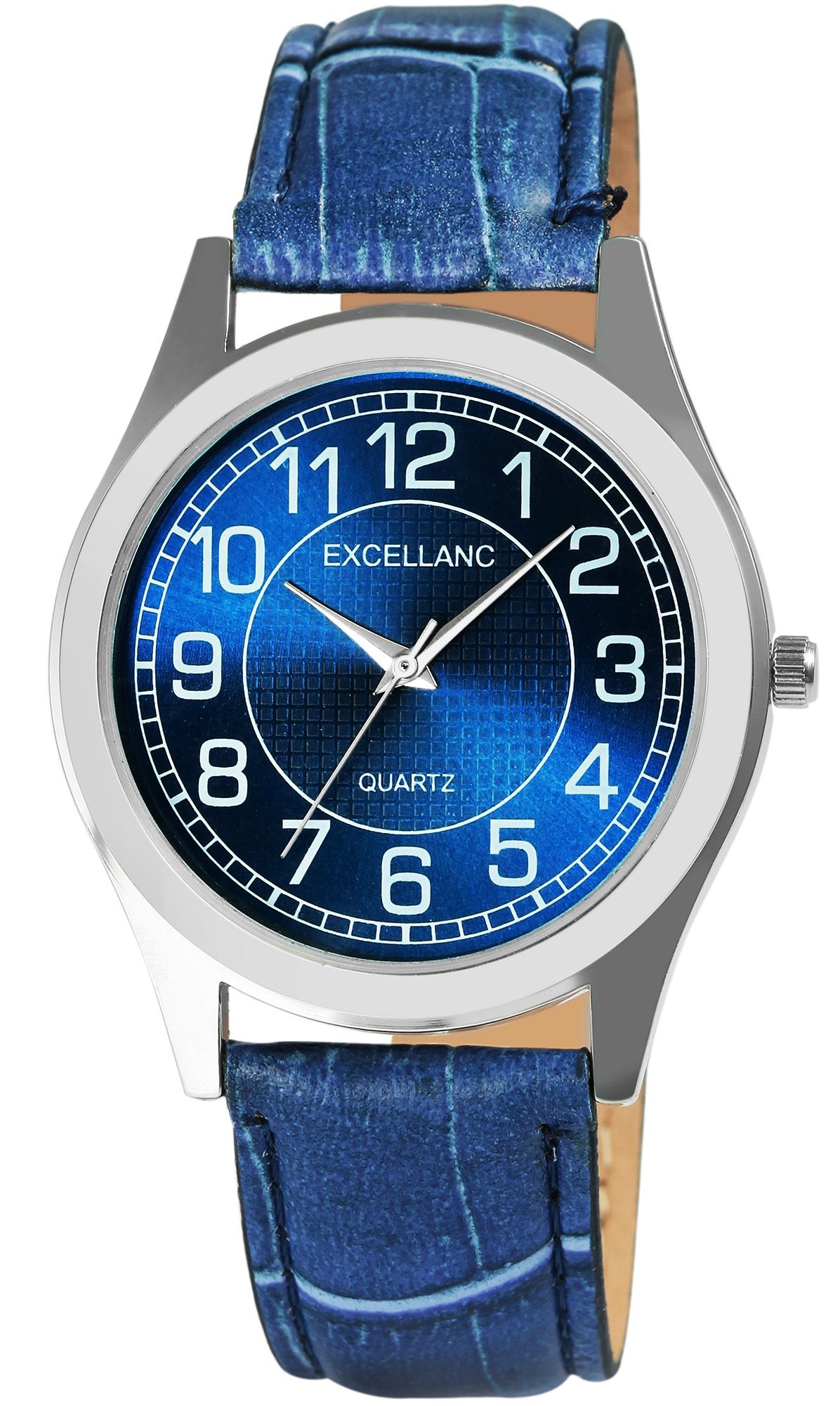 Produktinformationen "Excellanc Uhr für Herren mit Lederimitationsband, blau/silberfarben"