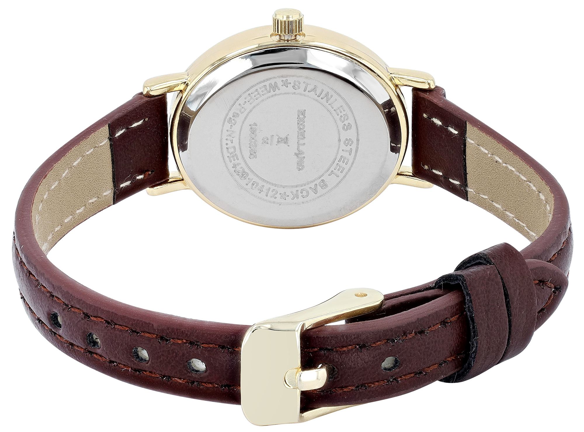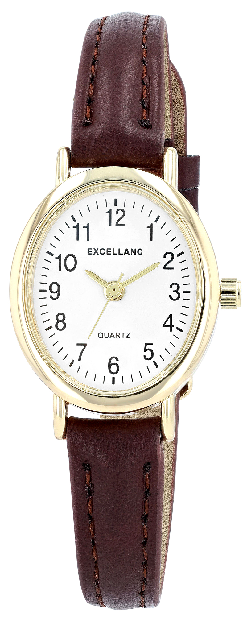 Produktinformationen "Excellanc ovale Damenuhr, Lederimitatband, braun/ goldfarben/ weiß"