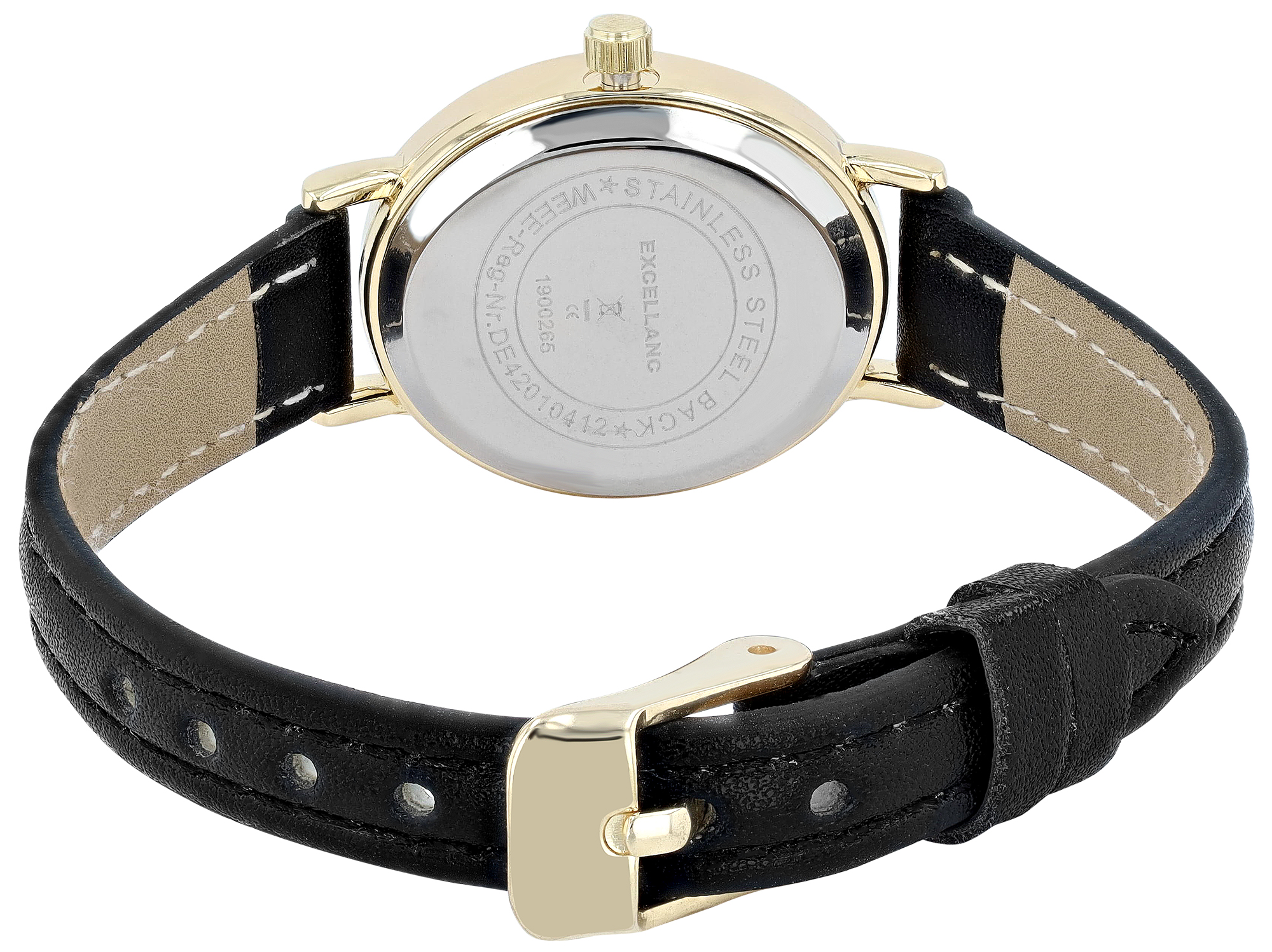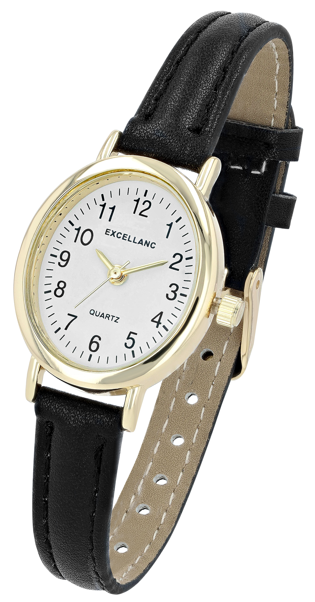 Produktinformationen "Excellanc ovale Damenuhr, Lederimitatband, schwarz/ goldfarben/ weiß"