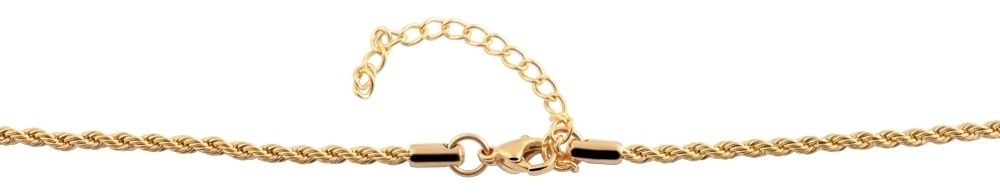 Die goldfarbene Kordelkette der Marke Akzent wurde aus Edelstahl gefertigt und ist in verschiedenen Längen erhältlich. Das Material ist anlaufgeschützt, robust und langlebig. Die Halskette besteht aus zwei Kettensträngen die miteinander verknüpft sind. Dieses Verfahren sorgt für eine spiralförmige Optik und ein klassisch, elegantes Design der Kette. Mit einem Edelstahl-Karabinerverschluss wird die Halskette hinten am Hals gesichert. Zusätzlich ist an das eine Ende der Kette ein 5 cm langes Verlängerungskettchen angebracht, die es ermöglicht in der Länge zu variieren. Die Kettenstärke beträgt 2 mm.