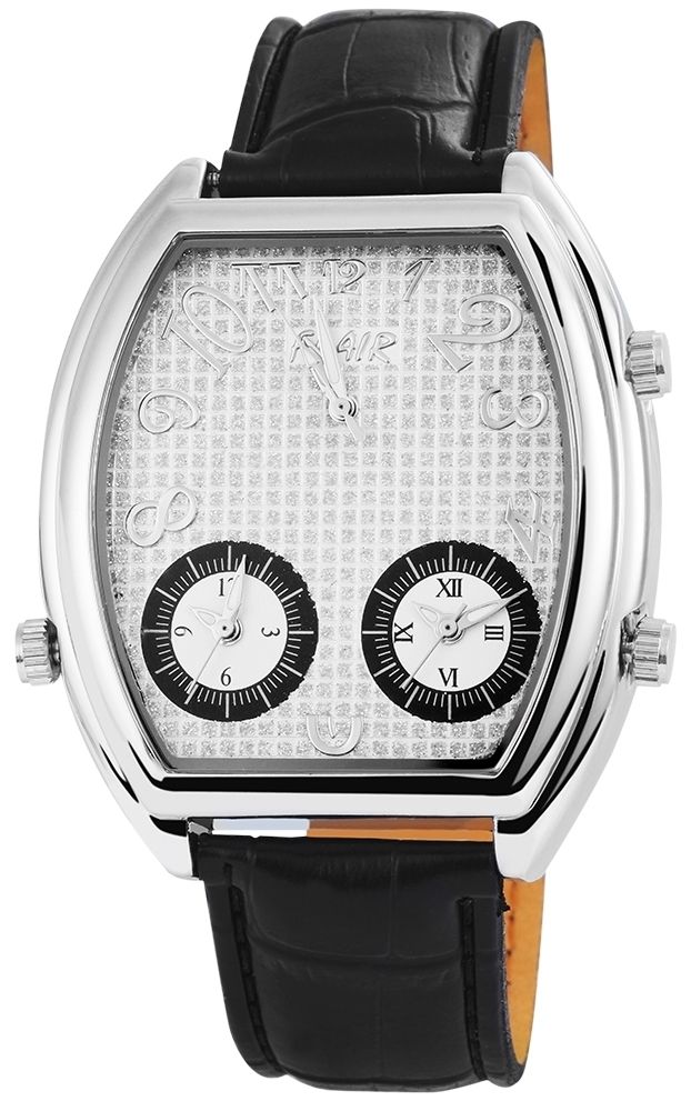 Produktinformationen "Flair Herrenuhr, Echtlederband, Triple-Time-Zone-Uhr, schwarz/ silberfarben"