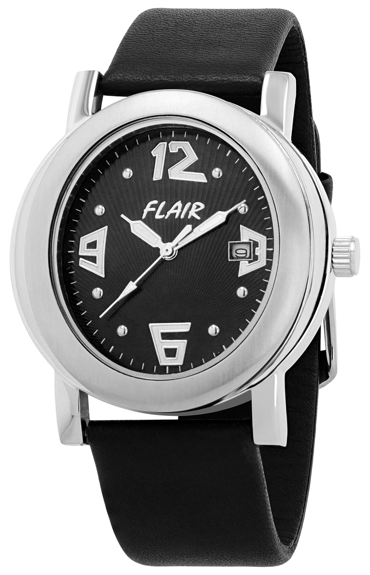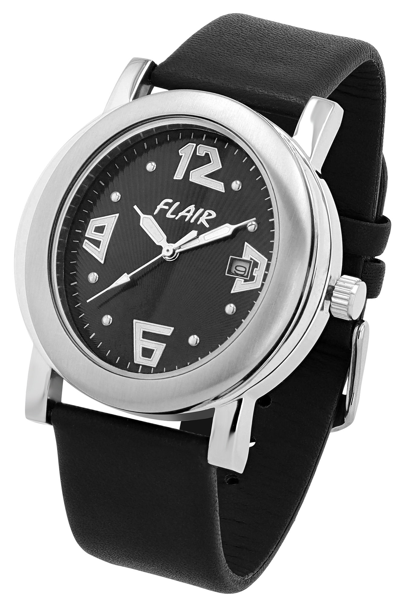 Produktinformationen "Flair Herrenuhr mit Echtlederarmband, schwarz/ silberfarben"