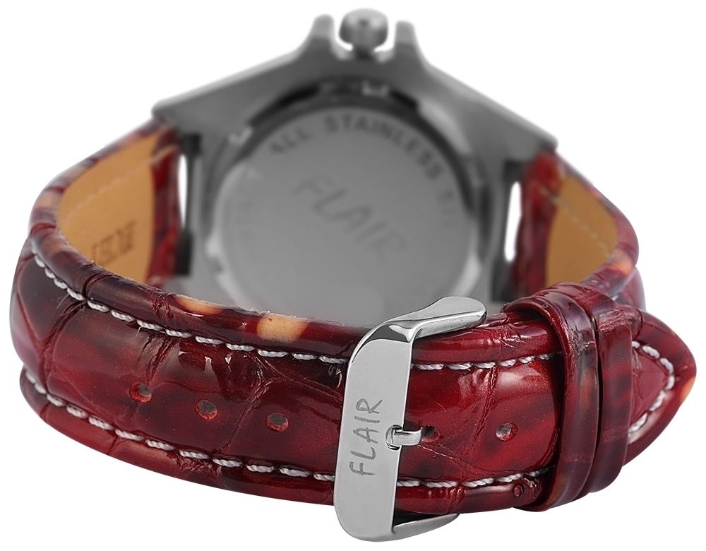 Die Analog Herrenuhr der Marke Flair verfügt über ein Hochwertiges Quarzwerk. Das Echtlederarmband ist 22 mm breit und wird mit einer Edelstahldornschließe geöffnet. Die Gesamtlänge beträgt 25 cm. Das Edelstahlgehäuse mit Mineralglas hat eine Abmessung von 40 mm und 13 mm Gehäusehöhe. Der Gehäusedeckel ist aus Edelstahl gefertigt. Die Uhr ist 5 ATM druckgeprüft. Die Flair Herrenuhr hat folgende Eigenschaften: Datumsanzeige.
