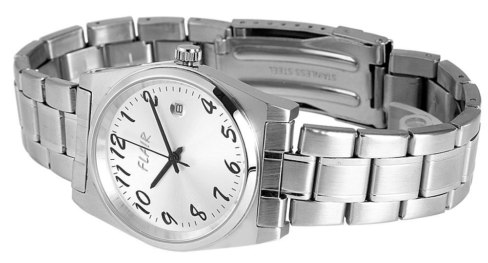 Die Analog Herrenuhr der Marke Flair verfügt über ein Hochwertiges Quarzwerk. Das Edelstahlarmband ist 20 mm breit und wird mit einer Edelstahlfaltschließe geöffnet. Die Gesamtlänge beträgt 22 cm. Das Edelstahlgehäuse mit Mineralglas hat eine Abmessung von 38 mm und 10 mm Gehäusehöhe. Der Gehäusedeckel ist aus Edelstahl gefertigt. Die Uhr ist 5 ATM druckgeprüft. Die Flair Herrenuhr hat folgende Eigenschaften: Datumsanzeige.