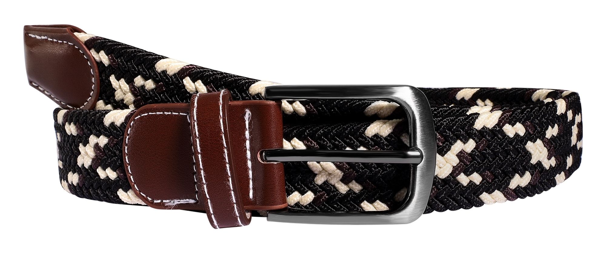 Der Textilgürtel in den Farben Braun, Beige und Schwarz mit Flechtmuster, überzeugt mit einer sportiven Optik. Eine elegante Note erhält der Flechtgürtel durch seine braunen Lederimitat Applikationen an beiden Enden. Hergestellt aus hochwertigem Textilmaterial, bietet unser Flechtgürtel einen angenehmen Tragekomfort. Der Gürtel besitzt eine robuste Dornschließe aus Metall, die Sie genau dort schließen können wo es für Sie am bequemsten ist. Bei unserem Flechtgürtel haben sie verschiedene Längenoptionen 100 cm, 110 cm und 120 cm, er hat eine Breite von 3,2 cm sowie einer Stärke von 0,5 cm, somit ist für jeden die passende Größe dabei. Er ist aufgrund des Materials sehr robust, langlebig und reißfest. Ein toller Freizeitgürtel aus Textil für den sportlichen Look.