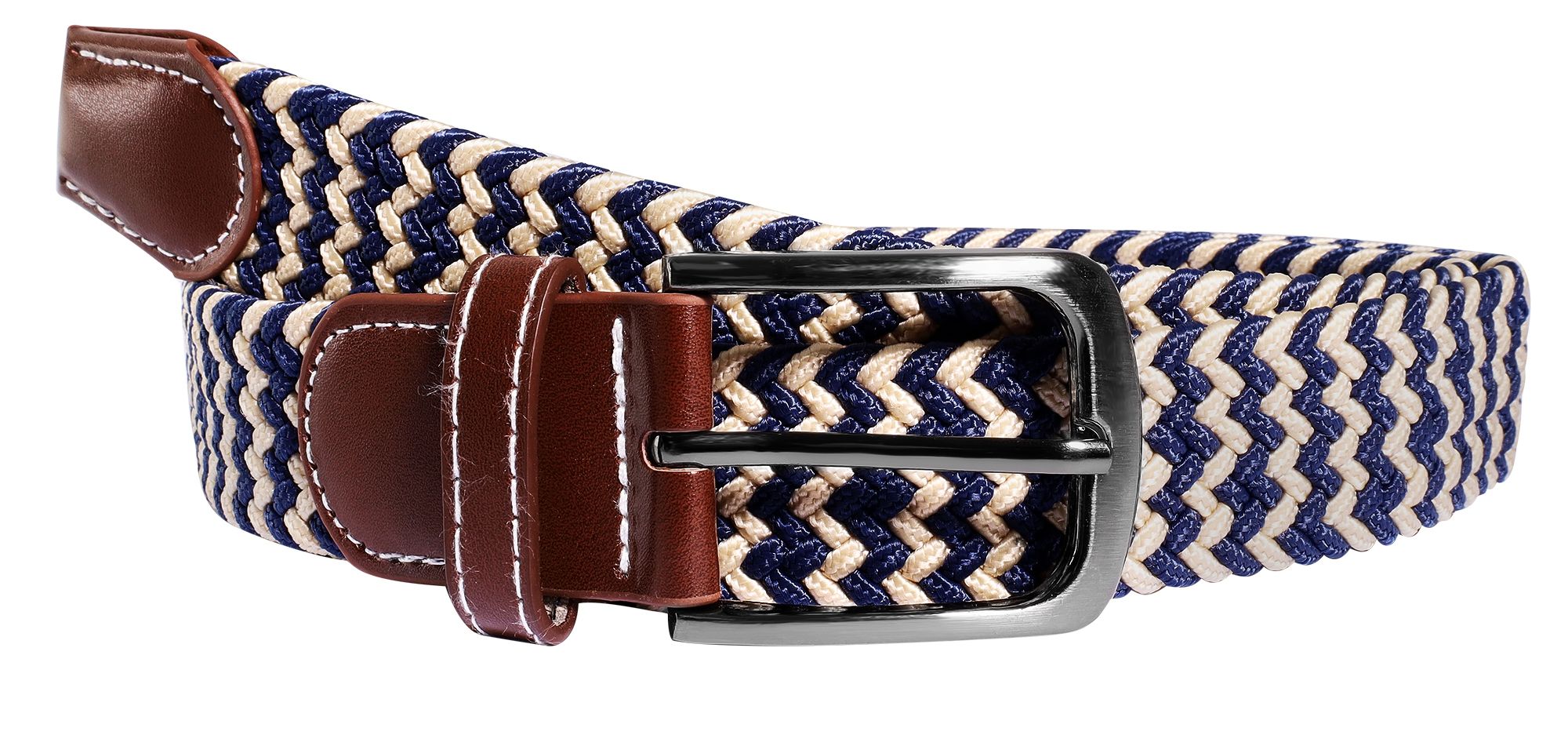 Der Textilgürtel in den Farben Blau und Beige mit zickzack Muster, überzeugt mit einer sportiven Optik. Eine elegante Note erhält der Flechtgürtel durch seine braunen Lederimitat Applikationen an beiden Enden. Hergestellt aus hochwertigem Textilmaterial, bietet unser Flechtgürtel einen angenehmen Tragekomfort. Der Gürtel besitzt eine robuste Dornschließe aus Metall, die Sie genau dort schließen können wo es für Sie am bequemsten ist. Bei unserem Flechtgürtel haben sie verschiedene Längenoptionen 100 cm, 110 cm und 120 cm, er hat eine Breite von 3,2 cm sowie einer Stärke von 0,5 cm, somit ist für jeden die passende Größe dabei. Er ist aufgrund des Materials sehr robust, langlebig und reißfest. Ein toller Freizeitgürtel aus Textil für den sportlichen Look.
