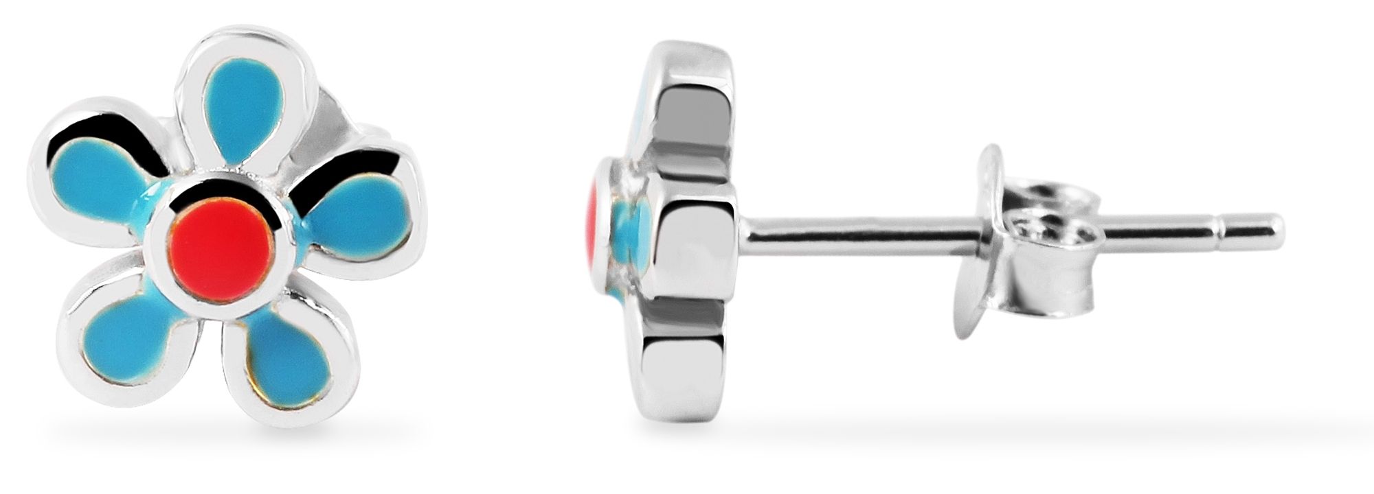Die floralen Ohrstecker in Form von kleinen Blumen wurden aus 925er Sterlingsilber hergestellt und sind zusätzlich rhodiniert. Die Beschichtung schützt das Schmuckstück vor dem Anlaufen und sorgt für einen hellen und strahlenden Glanz des Materials. Durch die Emaillierung strahlen die Blüten in verschiedenen Farben, das verschafft den niedlichen Ohrsteckern einen kindlichen und süßen Look. Mit einer Flügelschraube aus echtem Silber lassen sich die Ohrringe am Ohrloch befestigen. Die Größe ergibt sich aus einem Durchmesser von 7,5 mm und einer Stärke von 3 mm.
