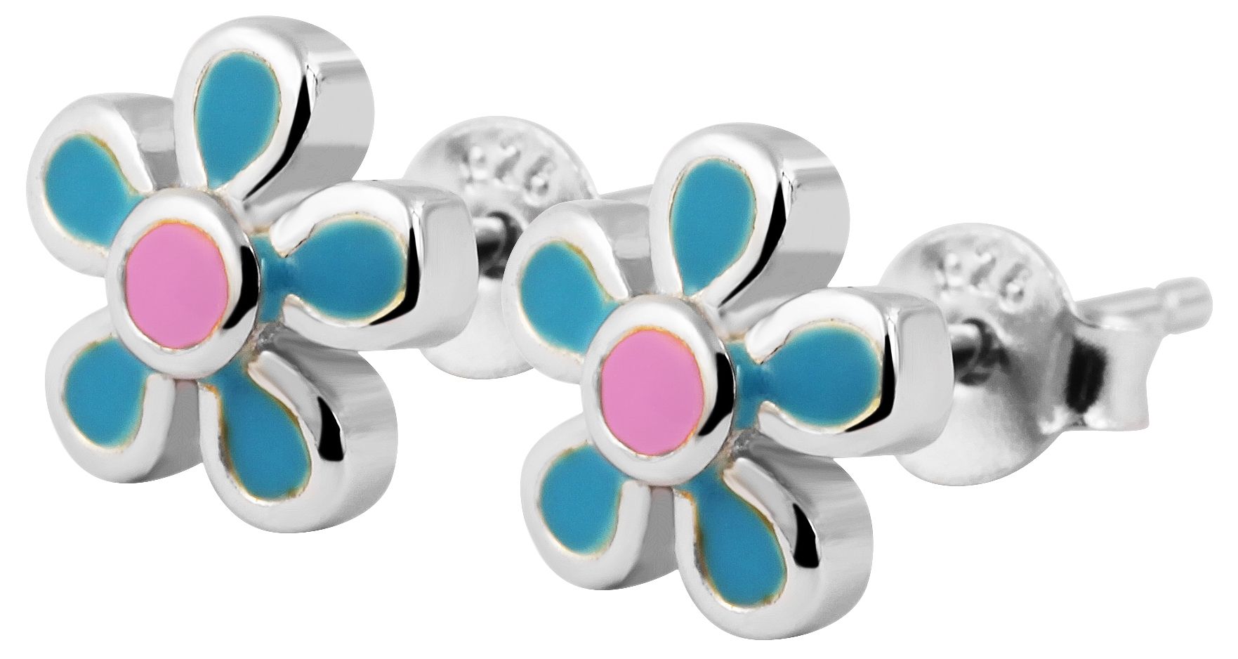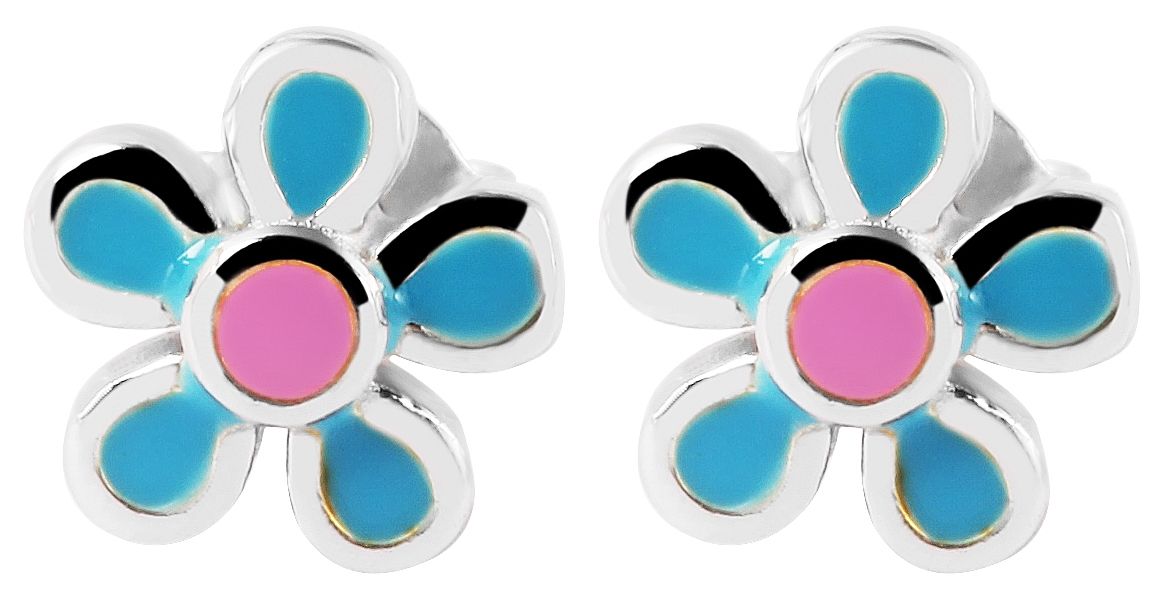 Produktinformationen ""Flora" 925/- Echt Silber Ohrstecker farbenfrohen Blumen blau/ rosa, silberfarben rhodiniert"