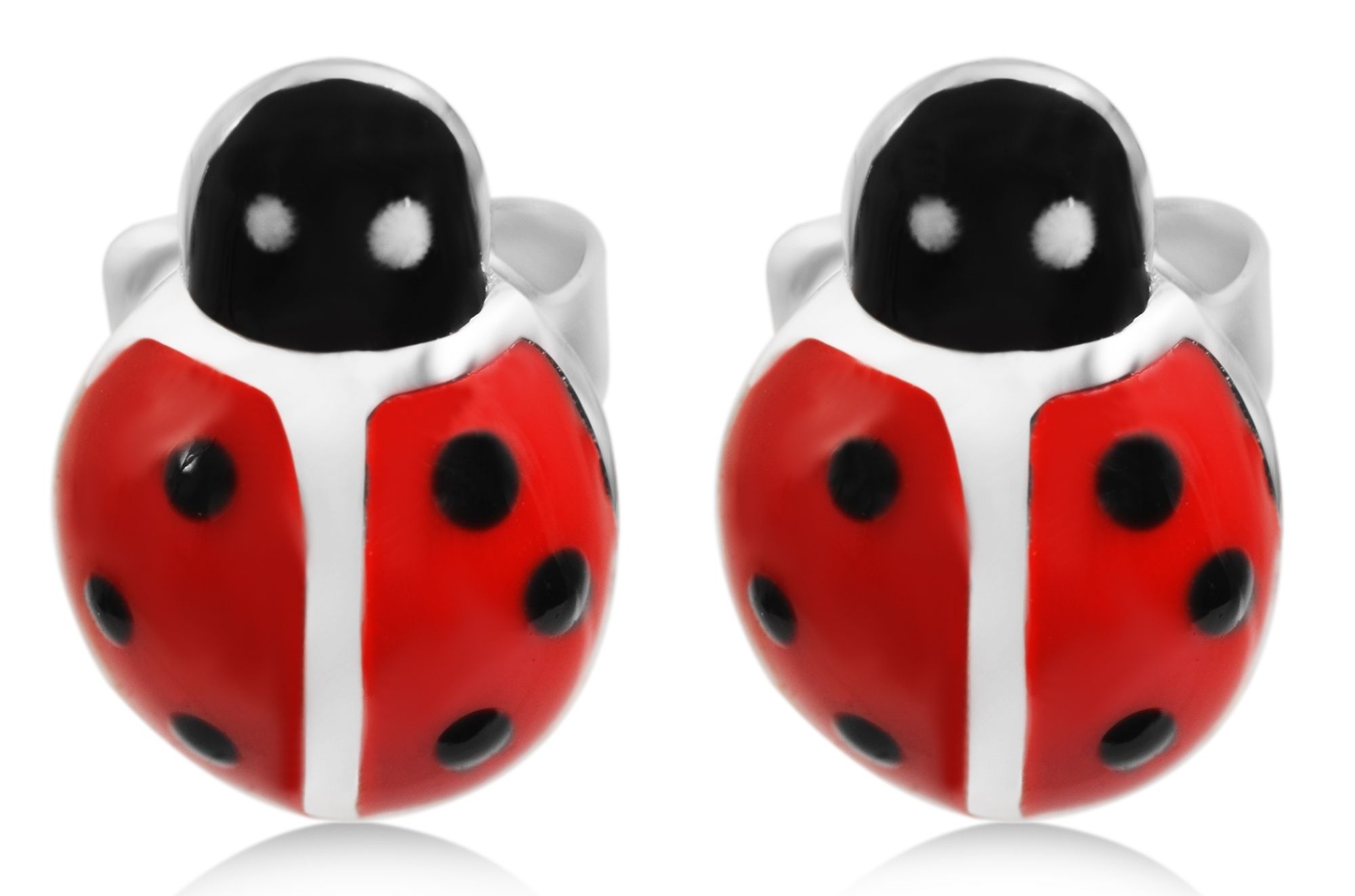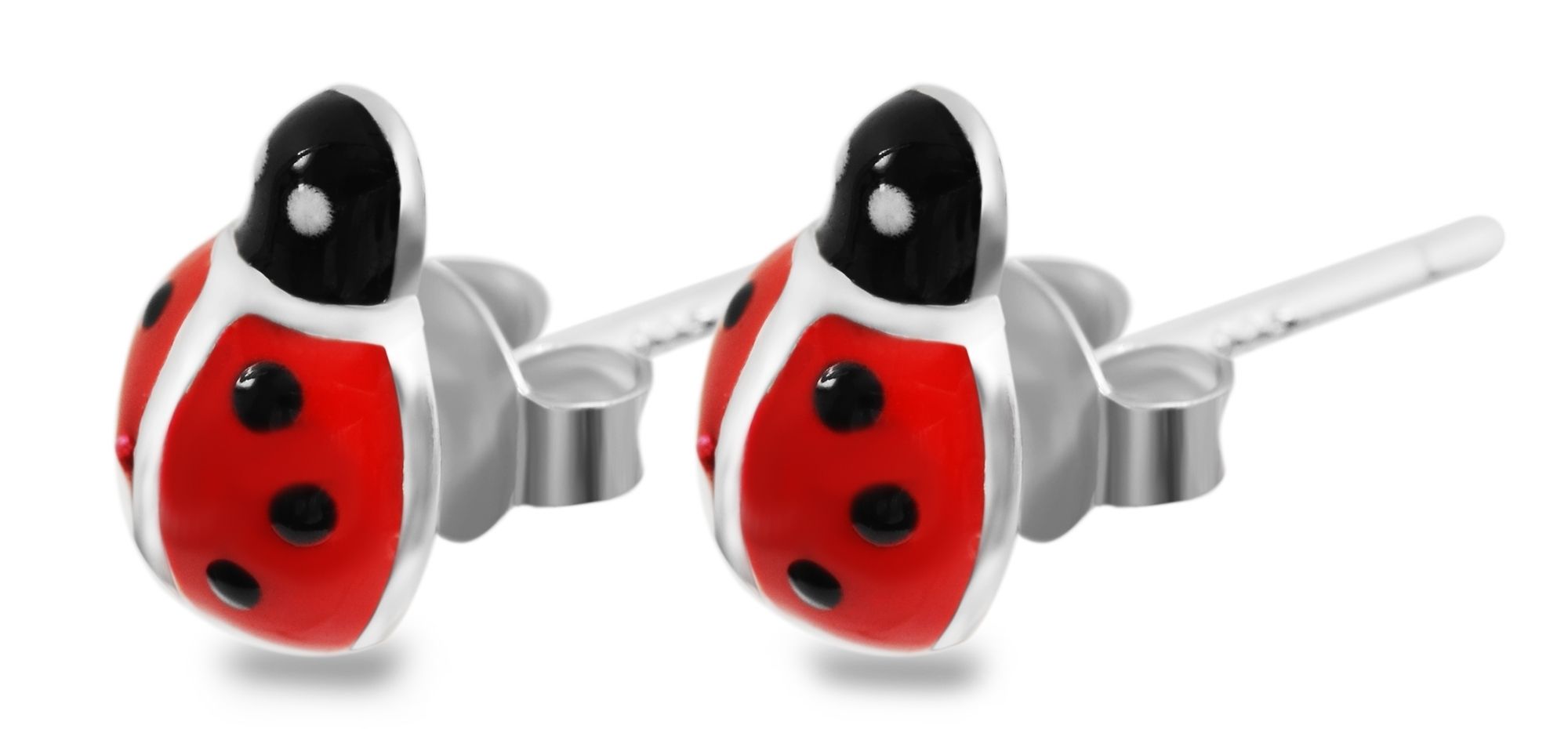 Die kleinen Marienkäfer sind mit detailreicher, farbenfroher Emaille verziert und mit einer Größe von 8 x 6 mm perfekt auf zarte Kinderohren abgestimmt. Damit die kleinen Glücksbringer im Alltag nicht verloren gehen, sorgen die kinderleicht zu bedienenden Flügelschrauben für einen besonders sicheren Halt und maximalen Tragekomfort.