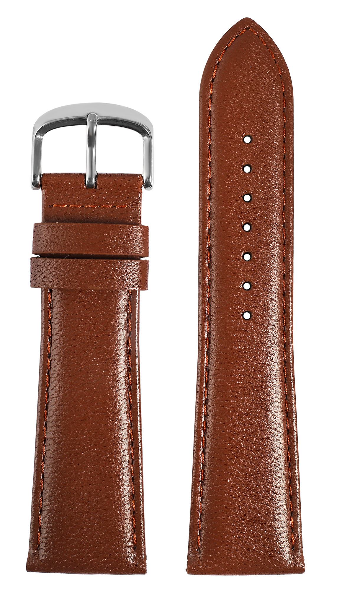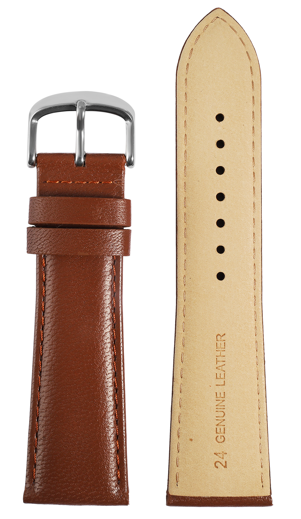 In den Anstoßbreiten 12 mm, 14 mm, 16 mm, 18 mm, 20 mm, 22 mm und 24 mm ist dieses Uhrenarmband aus hochwertigem Echtleder in braun erhältlich. Es bietet so eine passende Option für verschiedene Uhrenmodelle.