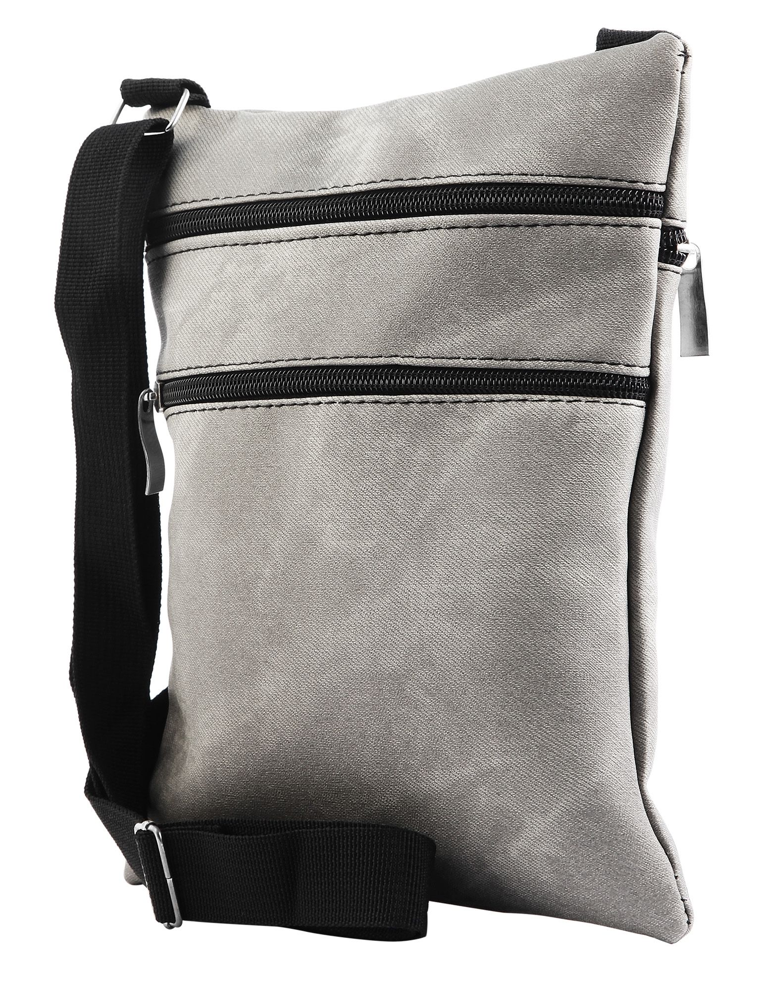 Die moderne Crossbody-Tasche ist aus robustem Lederimitat gefertigt und hat eine leicht strukturierte Oberfläche. Zudem verfügt sie über einen langen Tragehenkel, der auf eine maximale Länge von ca. 150 cm verlängert werden kann. Mit einem Reißverschluss lassen sich sowohl die beiden Außenfächer, als als auch das Fach auf der Rückseite bedienen. Die stilsichere Tasche ist ein modischer Allrounder, der sich zu vielen Gelegenheiten ausführen lässt. Zusätzlich überzeugt hier nicht nur das Design, sondern die Möglichkeit der Aufbewahrung aller wichtigen Gegenstände. Ob für einen gemütlichen Spaziergang, zum Einkaufen oder einen Ausflug - mit dieser Handtasche erhalten Sie einen idealen Gefährten aus robusten Materialien. Die Größe der Tasche ergibt sich im ungefüllten Zustand aus einer Länge von 24,5 cm, einer Breite von 20 cm und einer Materialsstärke von 2 cm.