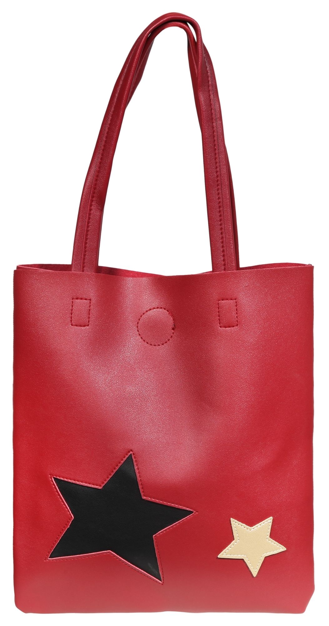 Die Handtasche ist eine Damentasche aus Lederimitation. Die gesamte Oberfläche ist rot und in glatter Struktur gehalten. Die Tasche hat zwei Tragehenkel und verfügt außerdem über ein großes Hauptfach, welches sich über einen Magnetverschluss öffnen lässt. Innen befinden sich hinter der Rückseite ein schließbares Innenfach mit einem Reißverschluss. Die Maße der Tasche ergeben sich aus einer Länge von 5 cm, einer Breite von 30 cm und einer Höhe von 33 cm.