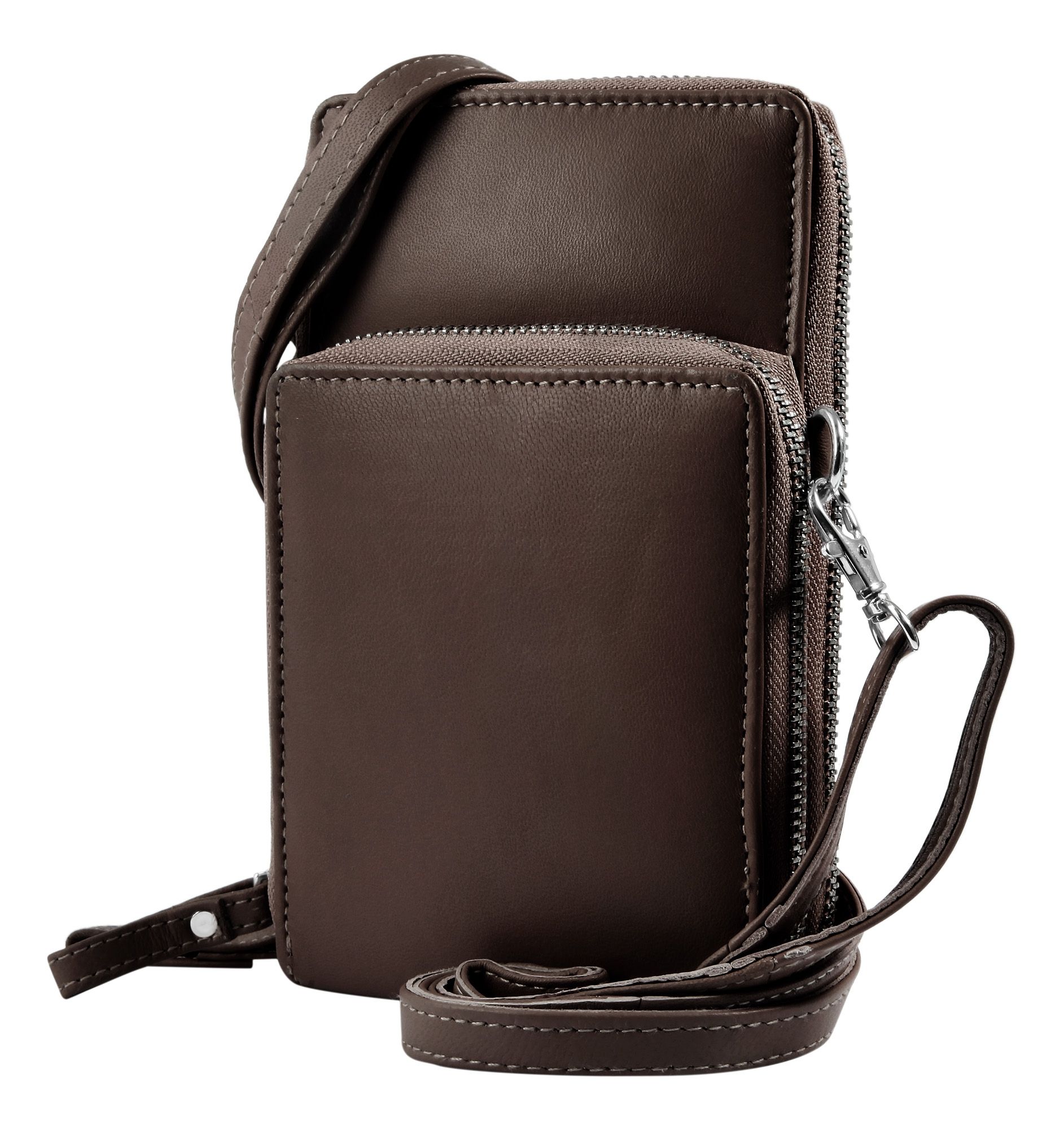 Produktinformationen "Handyumhängetasche Echtleder mit Minigeldbörse, geeignet für iPhone 15, dunkelbraun"