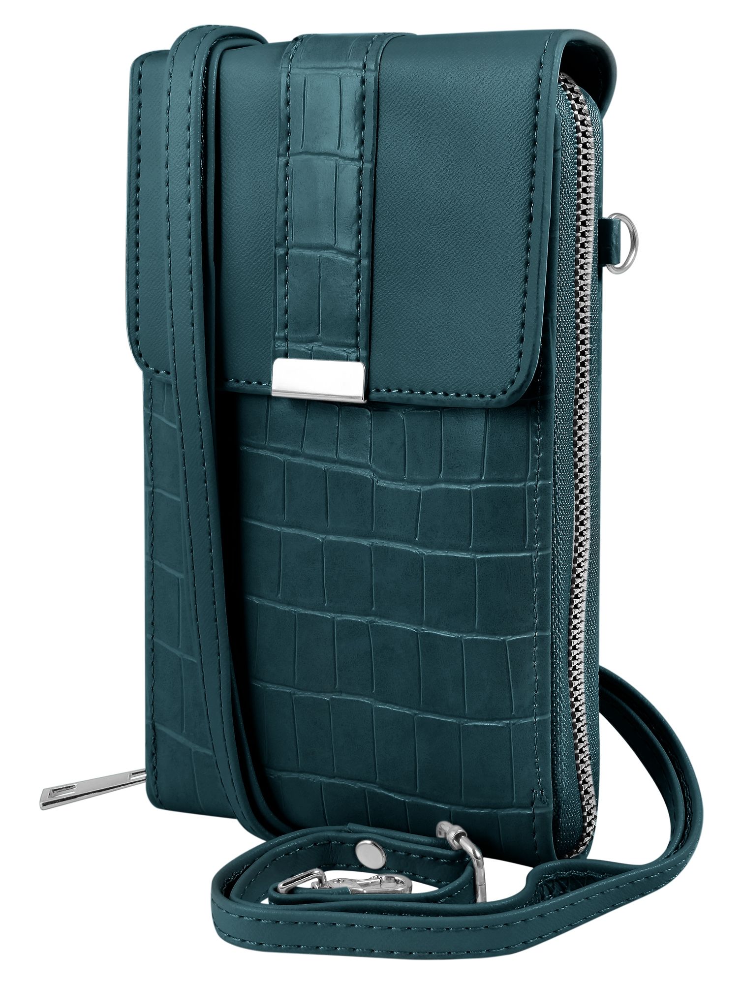 Produktinformationen "Handyumhängetasche aus Lederimitation, geeignet für Iphone 15, petrol"