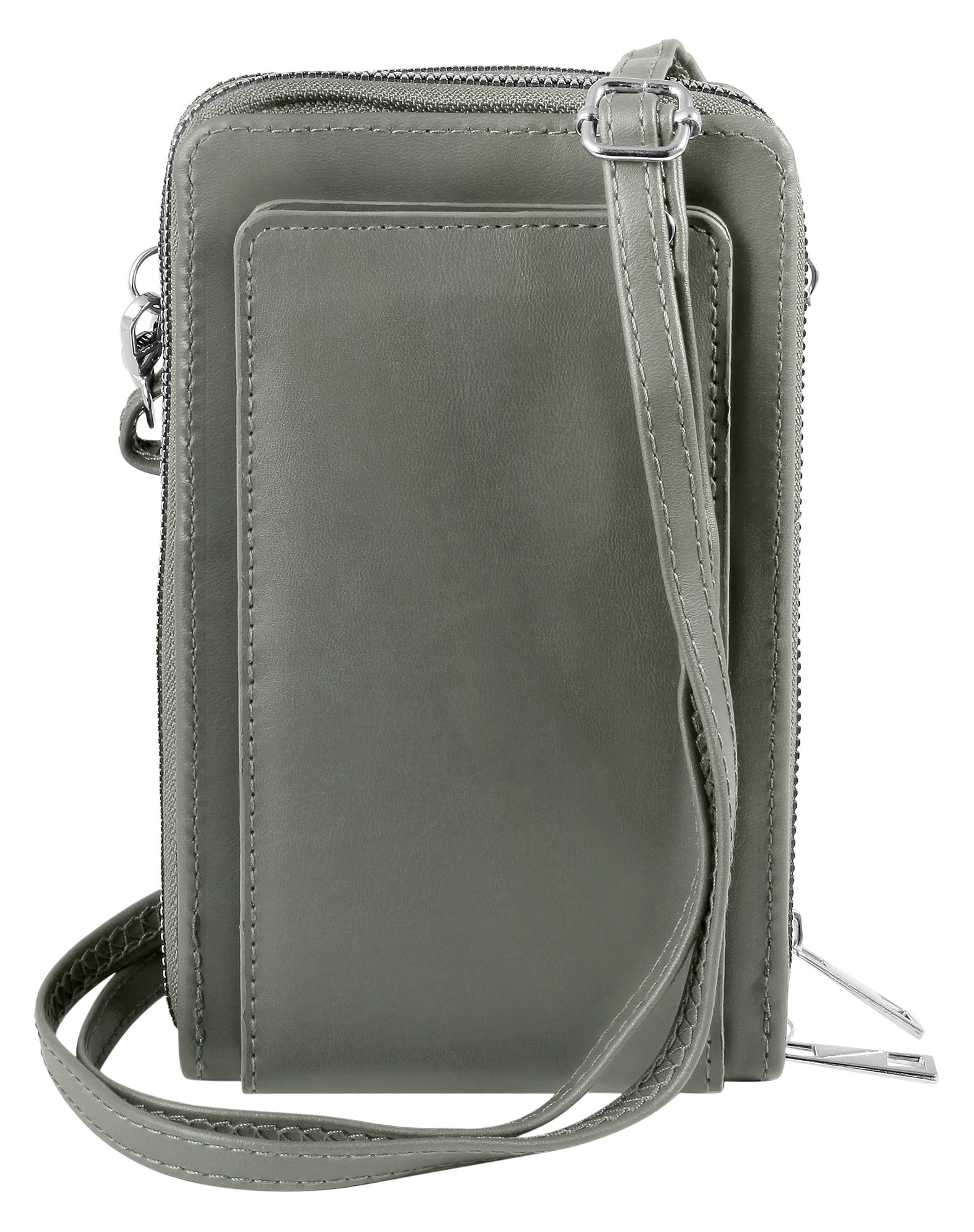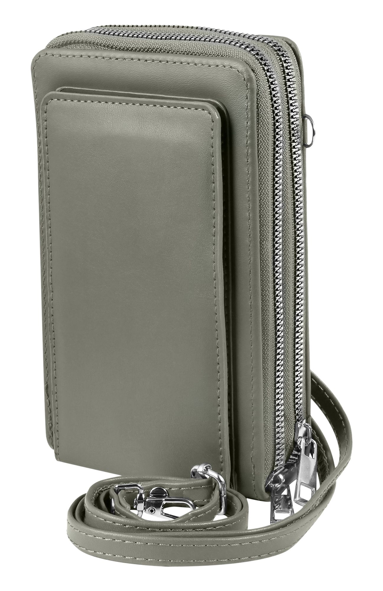 Produktinformationen "Handyumhängetasche aus Lederimitation, geeignet für iPhone 15, hellgrau"