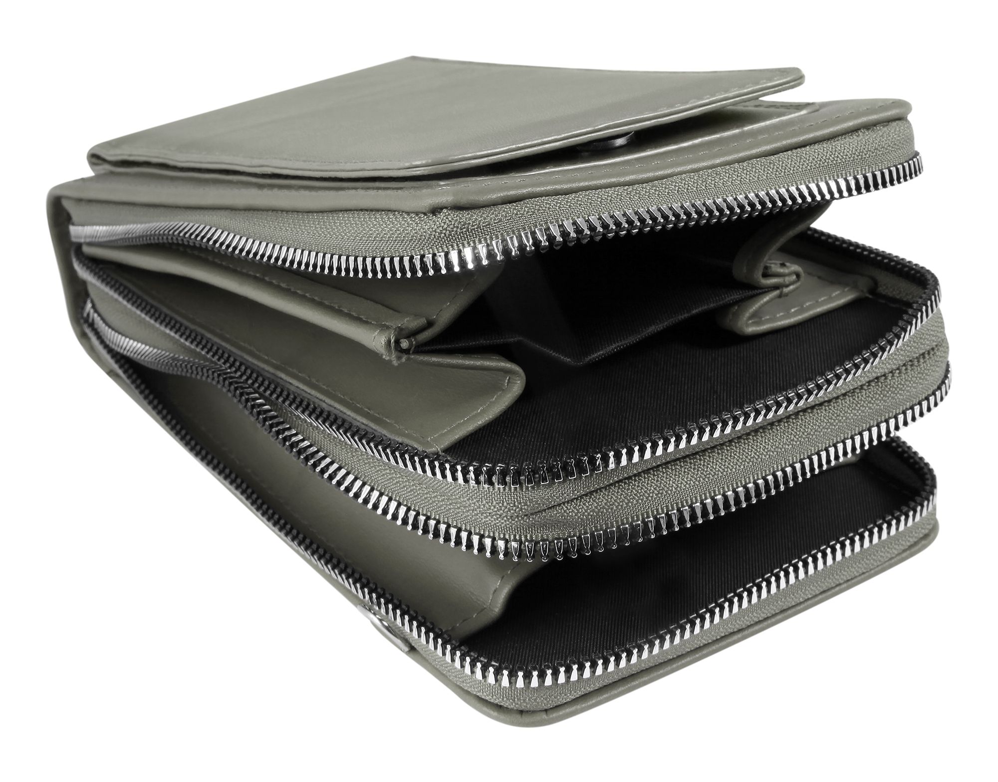 Die hellgraue kompakte Handyumhängetasche ist aus robustem und unempfindlichen Lederimitat gefertigt und ist in verschiedenen modischen Farben erhältlich. Sie ist für viele Freizeitaktivitäten bestens geeignet und kann das mühselige Tragen einer großen Handtasche ersetzen. Die Crossbody Bag überzeugt nicht nur durch ihr minimalistisches Design, sondern auch durch die praktische Aufbewahrungsmöglichkeit aller wichtigen Gegenstände. Trotz ihrer kompakten Größe bietet sie genug Stauraum um alles Wichtige übersichtlich und sicher zu verstauen. Sie verfügt über zwei Reißverschlussfächer und ein Kartenfach mit Platz für acht Karten, welches mit einem Druckknopfverschluss gesichert wird. Die Größe der Handyumhängetasche ergibt sich aus einer Länge von 18 cm, einer Breite von 11 cm und einer Stärke von 4 cm im ungefüllten Zustand. Mit ihrer Größe eignet sich die Tasche für große Handys, wie zum Beispiel das iPhone 15, iPhone 15 Pro oder iPhone 15 Pro Max. Der Umhängegurt besteht ebenfalls aus Lederimitation und hat eine maximale Länge von 125 cm. Zudem ist er verstell- und abnehmbar. Diese Tasche sieht nicht nur cool aus, sie ist auch ein super praktischer Begleiter in vielen Alltagssituationen. Ob für einen gemütlichen Spaziergang, zum Einkaufen oder einen Ausflug - mit dieser Handtasche erhalten Sie einen idealen Gefährten aus robusten Materialien.