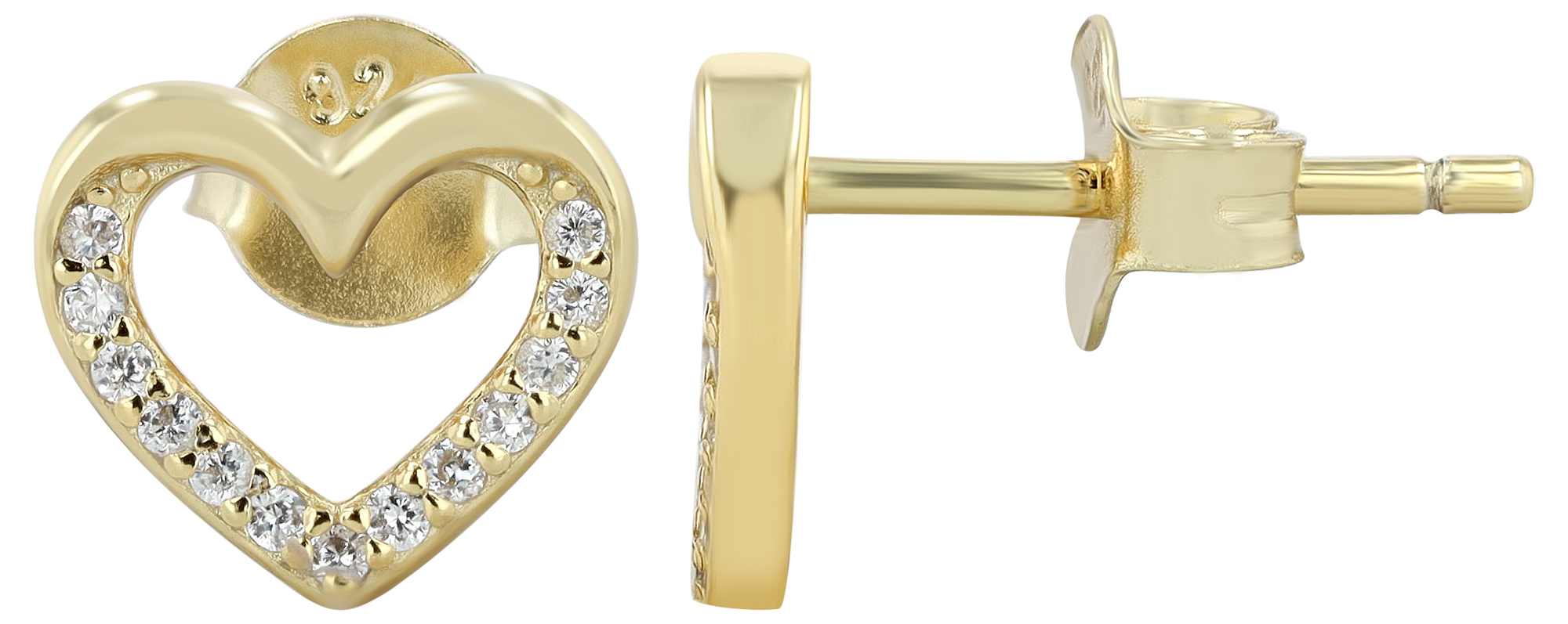 Produktinformationen ""Heather" 925/- Echt Silber Ohrstecker - offenes Herz, weiße Zirkoniasteine, vergoldet"
