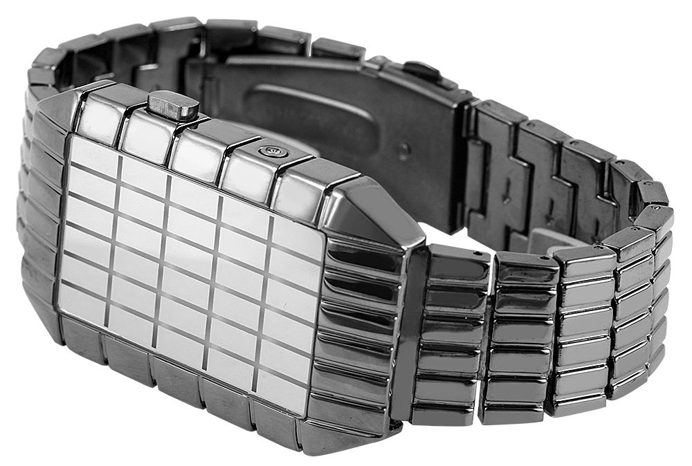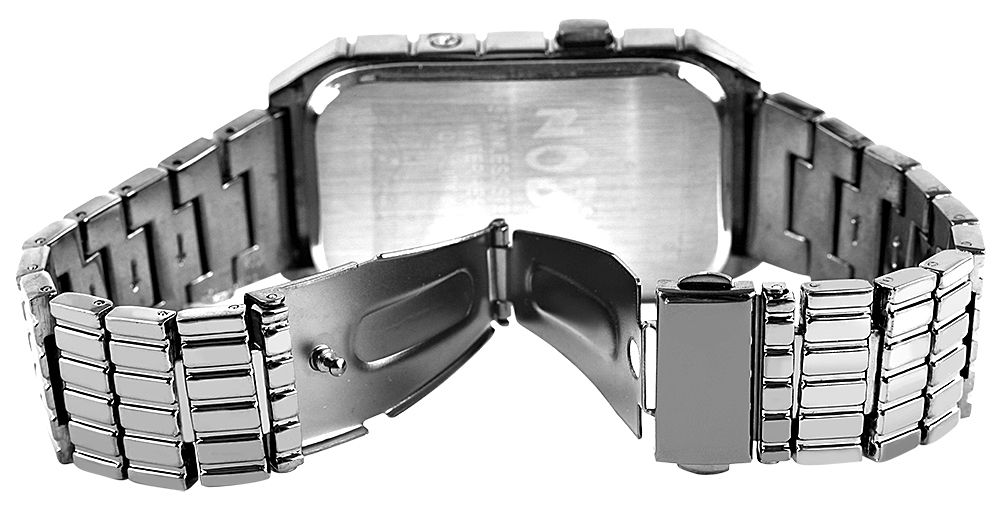 Die Digital Herrenuhr verfügt über ein Hochwertiges Quarzwerk. Das Edelstahlarmband ist 22 mm breit und wird mit einer Edelstahlfaltschließe geöffnet. Die Gesamtlänge beträgt 18 cm. Das Metallgehäuse mit Mineralglas hat eine Abmessung von 34x56 mm und 9 mm Gehäusehöhe. Der Gehäusedeckel ist aus Edelstahl gefertigt. Die Herrenuhr hat folgende Eigenschaften: Datumsanzeige.