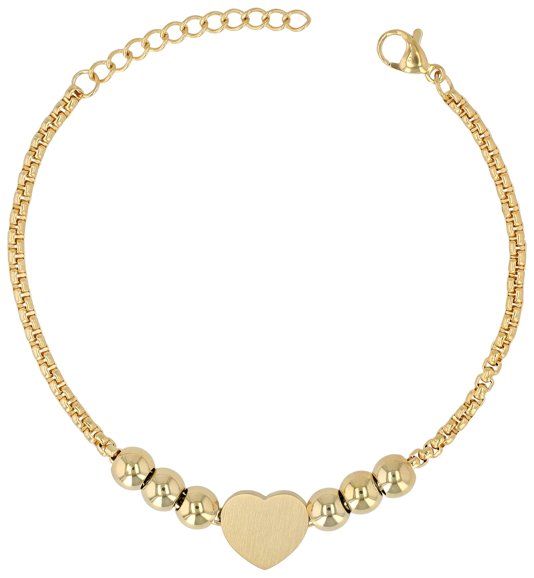 Produktinformationen ""Hilla", Akzent Armband, Edelstahl, Kugeln & Herz, poliert/mattiert, goldfarben, 17 + 3 cm"