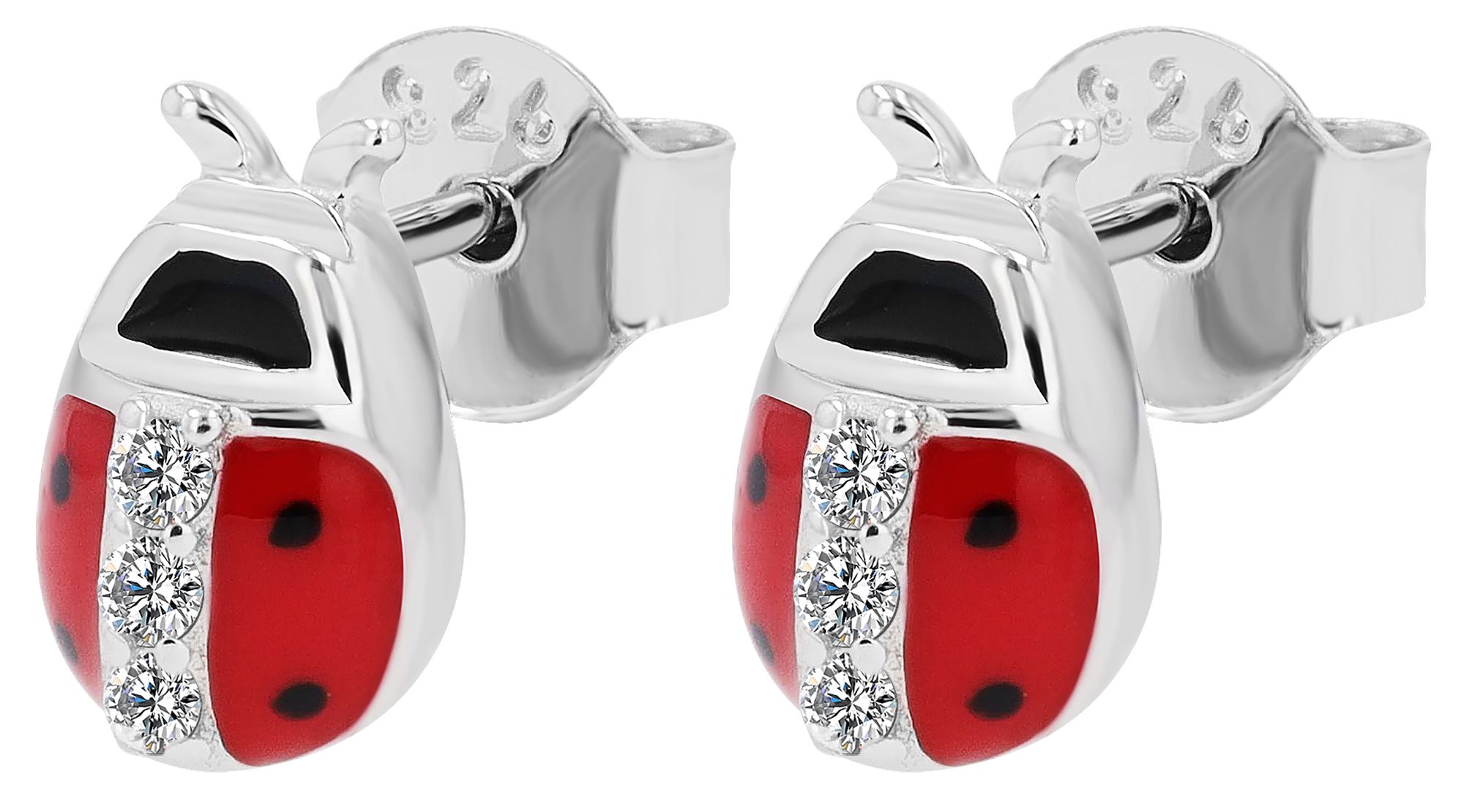 Produktinformationen ""Itzel" 925/- echt Silber Kinderohrstecker, Marienkäfer, Emaille & Zirkonia, rhodiniert"