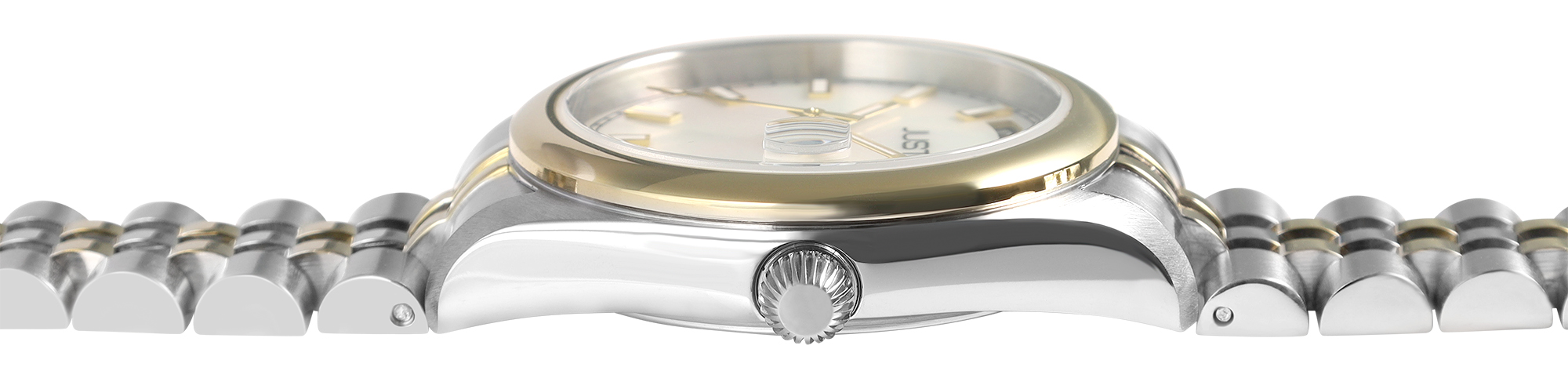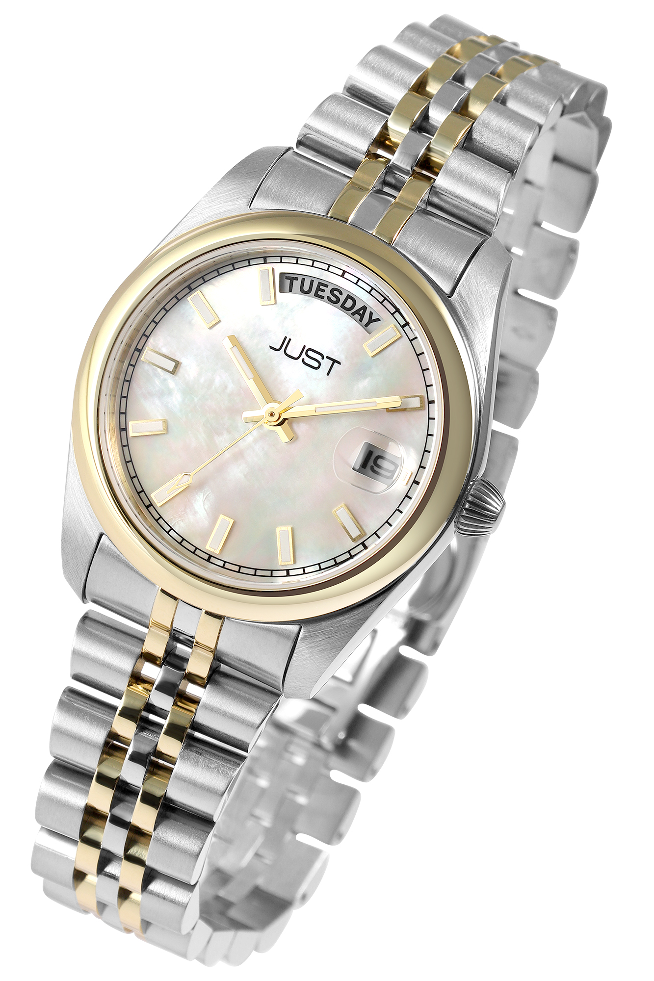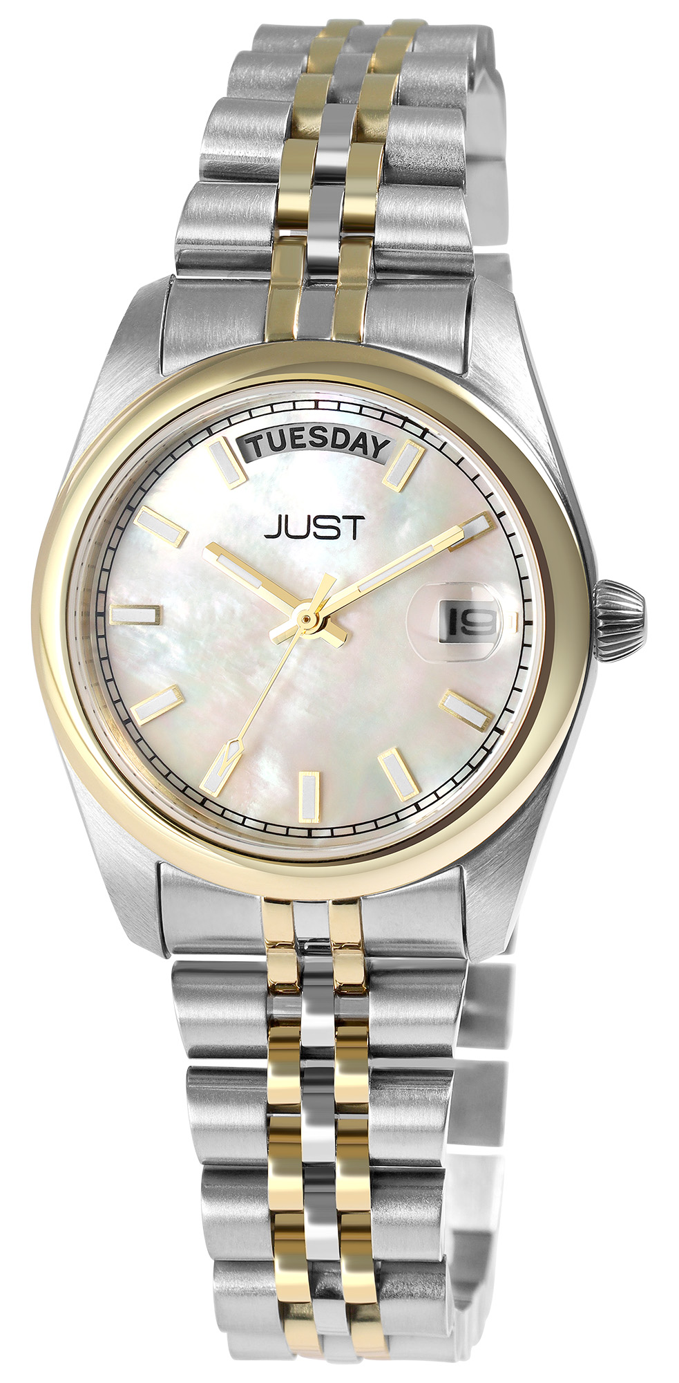 Produktinformationen "JUST Damenuhr "Felicitas" mit Edelstahlarmband, 5ATM, bicolor (silberfarben/ goldfarben) + perlmutt"