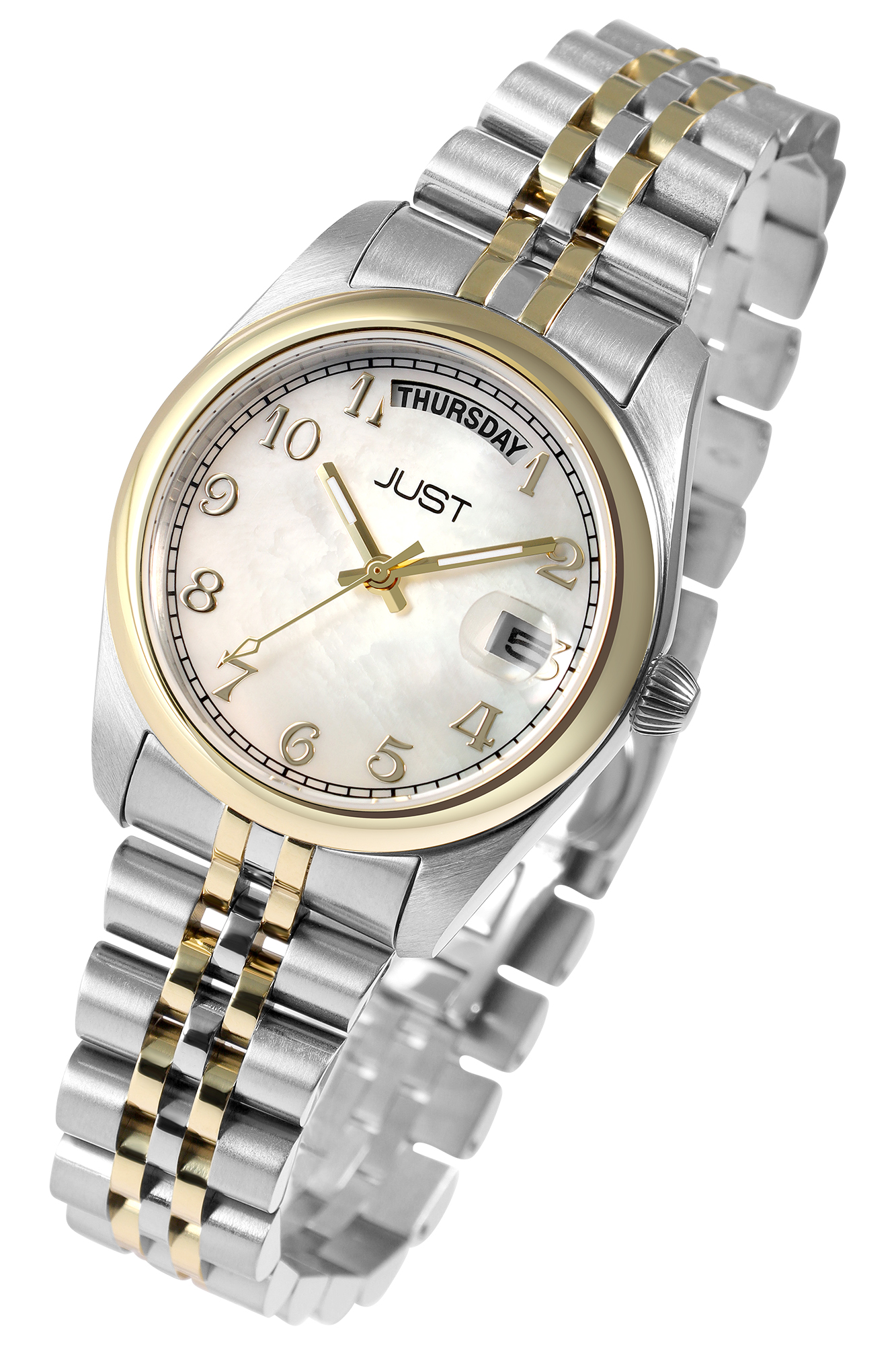 Produktinformationen "JUST Damenuhr "Felicitas" mit Edelstahlarmband, 5ATM, bicolor (silberfarben/ goldfarben) + perlmutt"